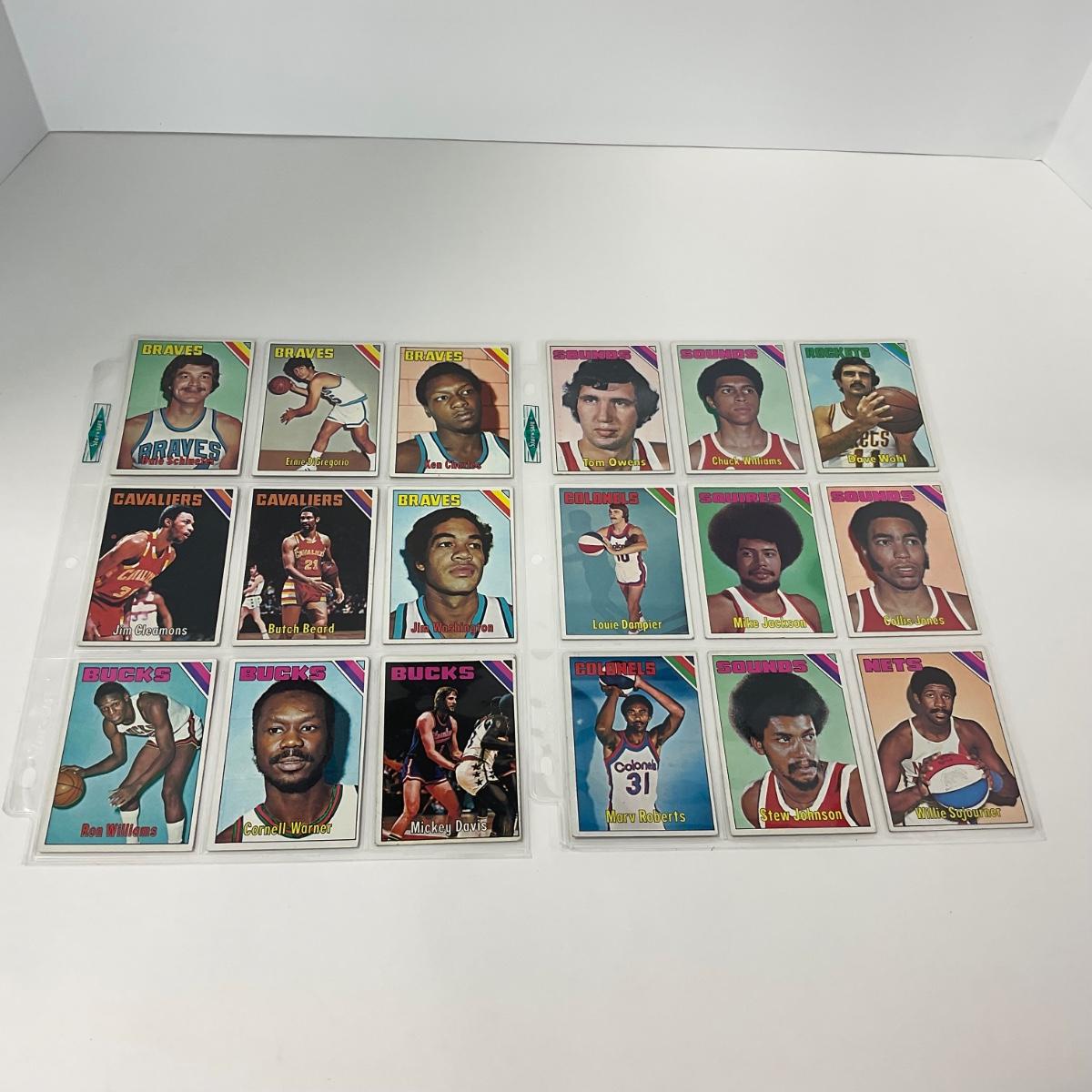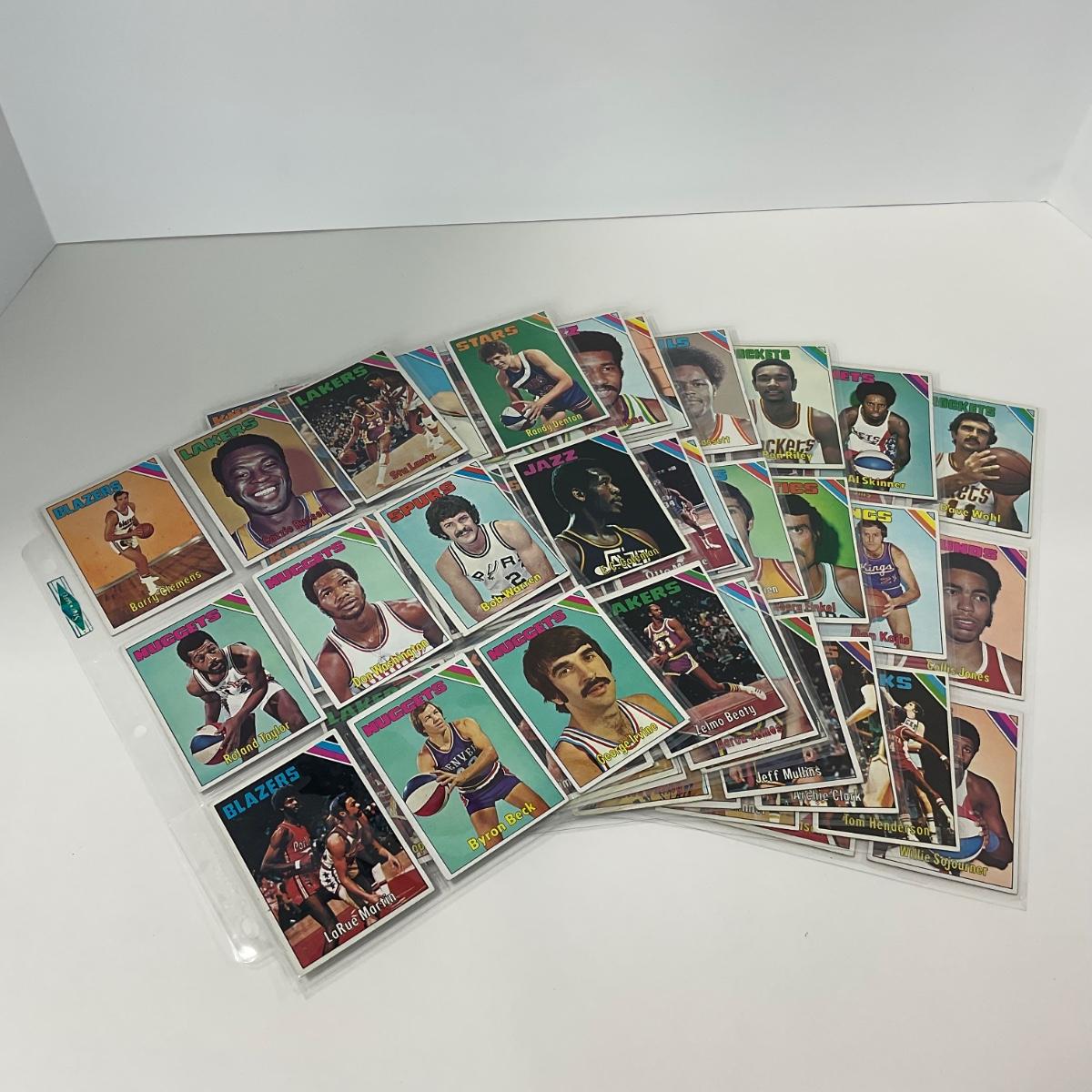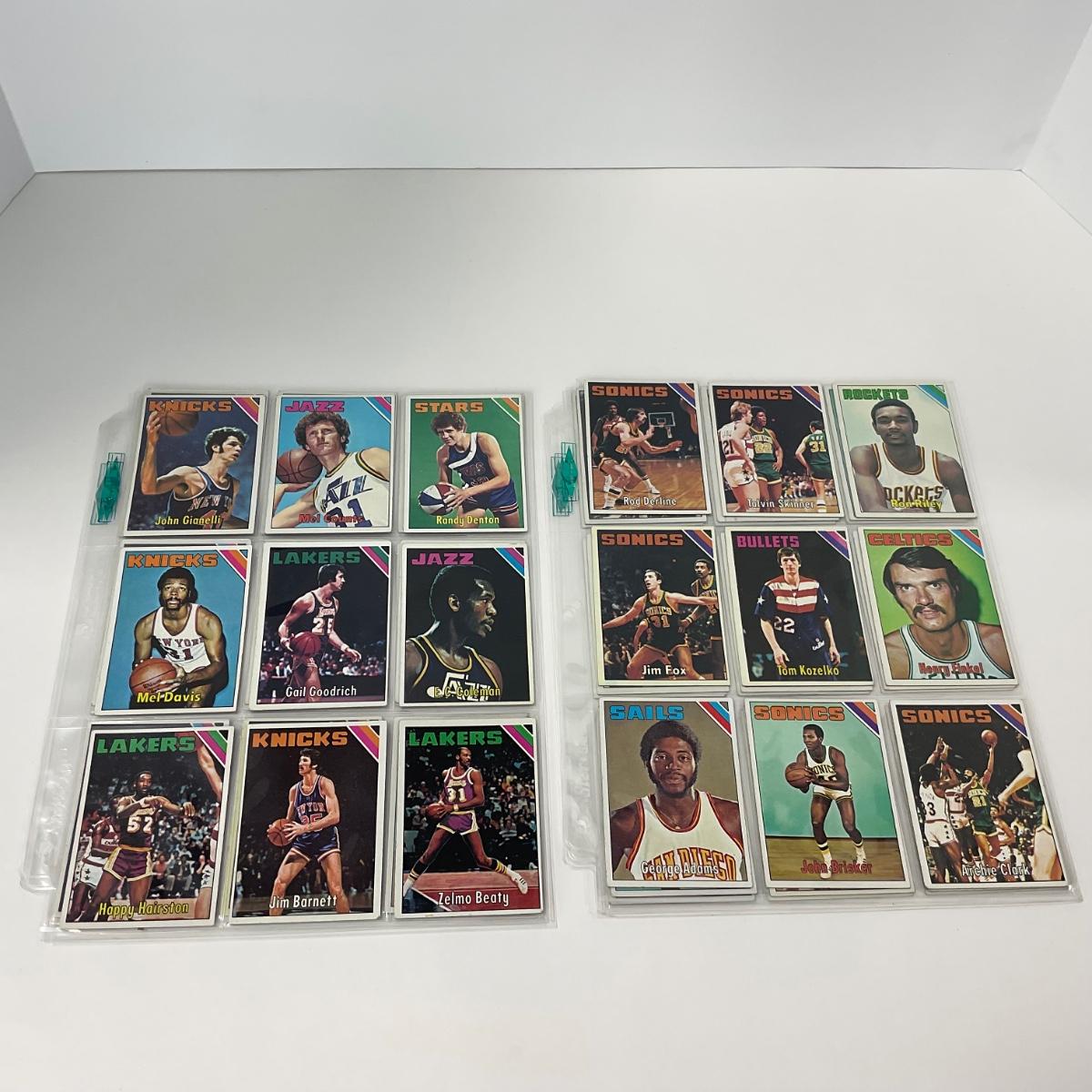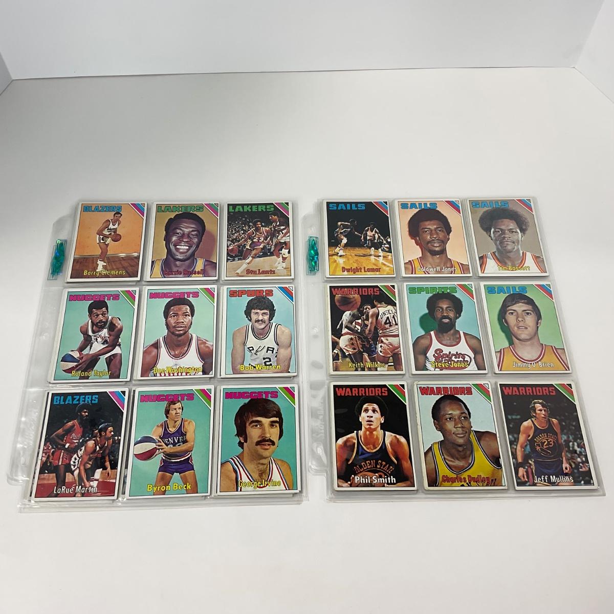 Eight pages of 1975 Topps Basketball cards. Please see photos for details and condition. ::: Shipping is available on this lot. If you require shipping you must let us know at the close of the auction. We will coordinate with you after the item has been won. Shipping fees will include insurance up to or exceeding the value of all items being mailed. If you have any questions regarding this lot please contact the auctioneer either via this website, by direct email or by phone. PICK UP TIMES and other important information can be found in the TERMS and DESCRIPTION of the auction. Please take a look for pertinent information. Thanks!