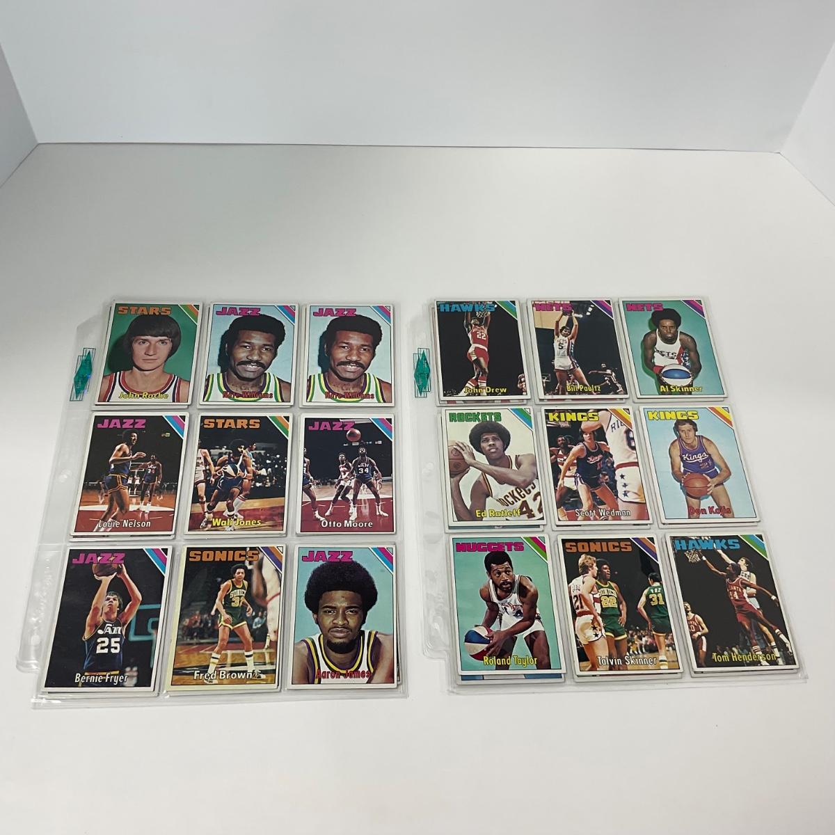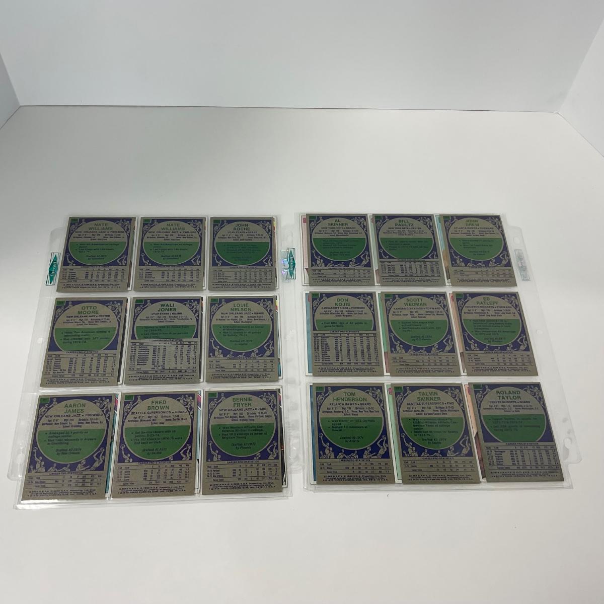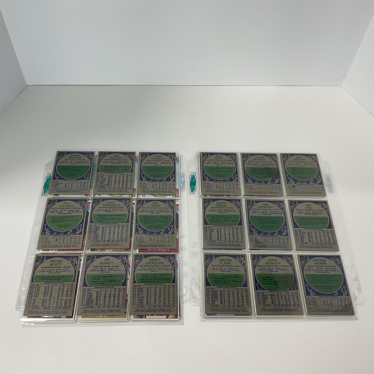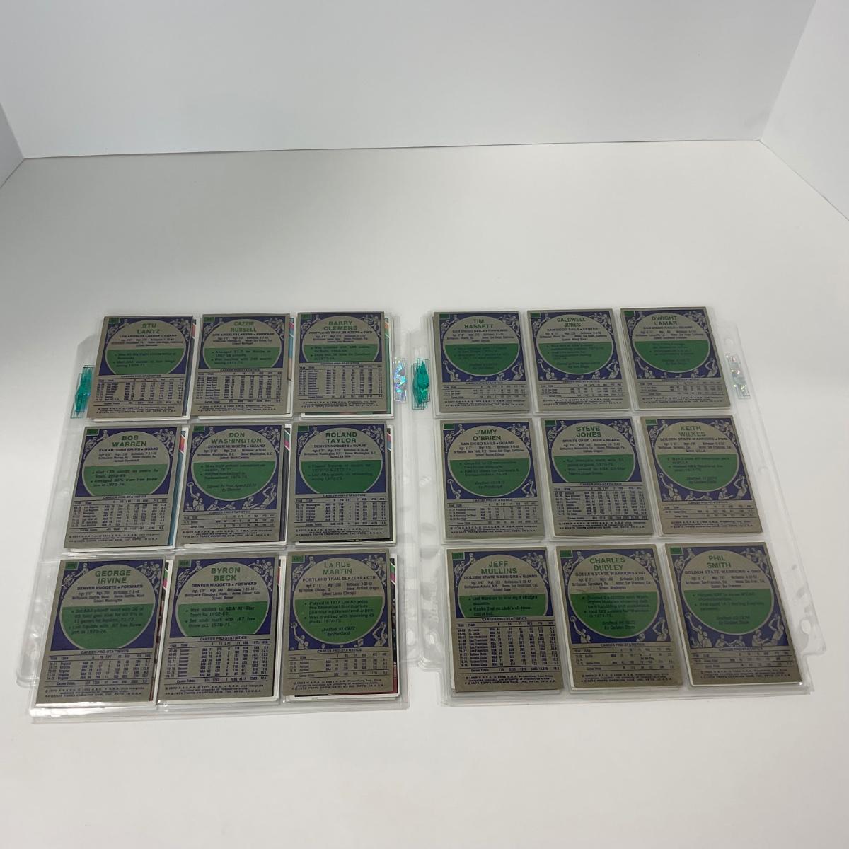 Eight pages of 1975 Topps Basketball cards. Please see photos for details and condition. ::: Shipping is available on this lot. If you require shipping you must let us know at the close of the auction. We will coordinate with you after the item has been won. Shipping fees will include insurance up to or exceeding the value of all items being mailed. If you have any questions regarding this lot please contact the auctioneer either via this website, by direct email or by phone. PICK UP TIMES and other important information can be found in the TERMS and DESCRIPTION of the auction. Please take a look for pertinent information. Thanks!