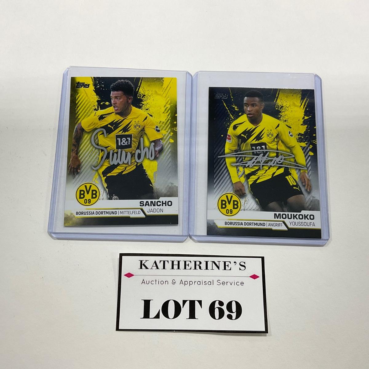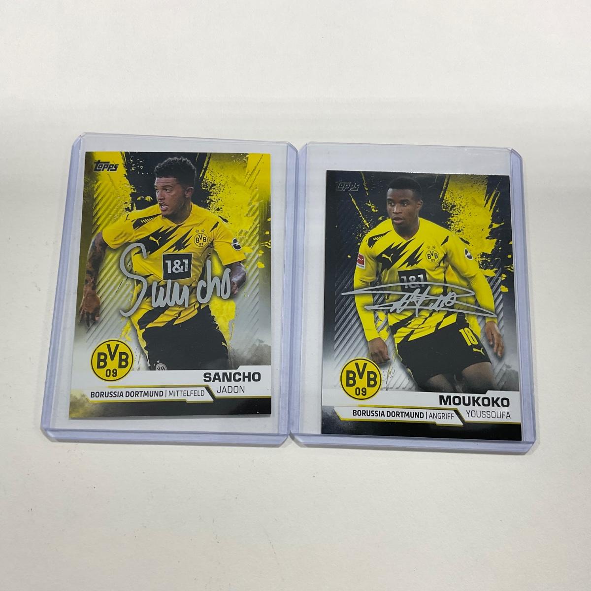 Two Borussia Dortmund cards including Jadon Sancho & Youssouf Moukoko. Please see photos for details and condition. Sia