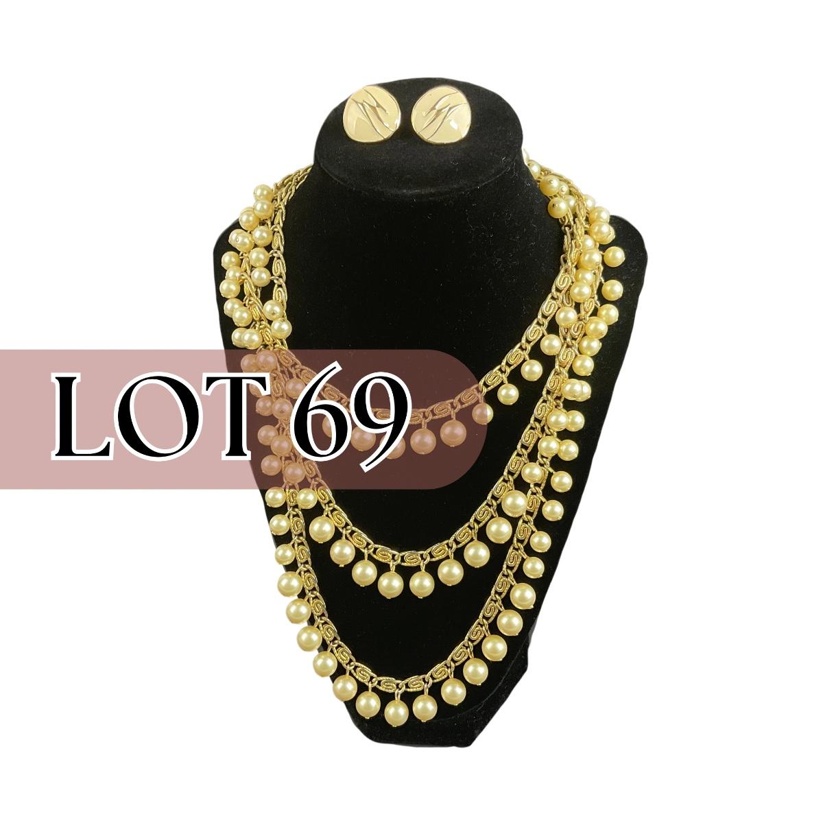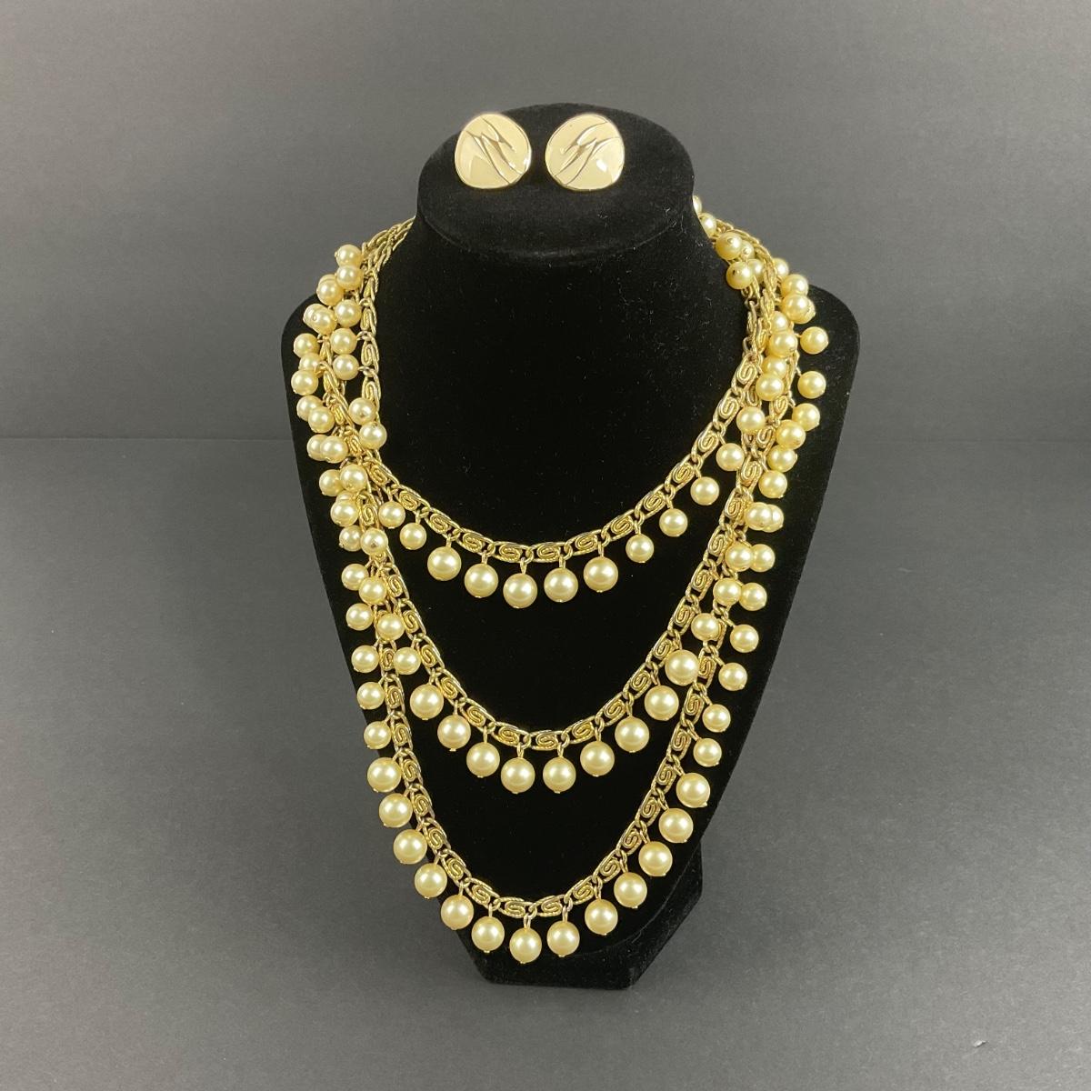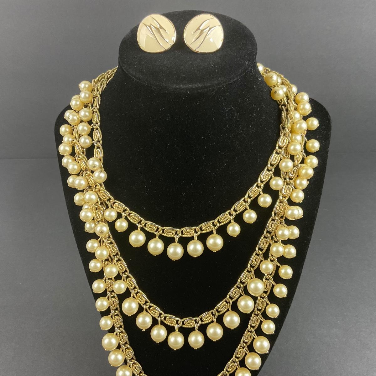 -69- TRIFARI | Gold Tone Necklace & Clip Earrings | Marked