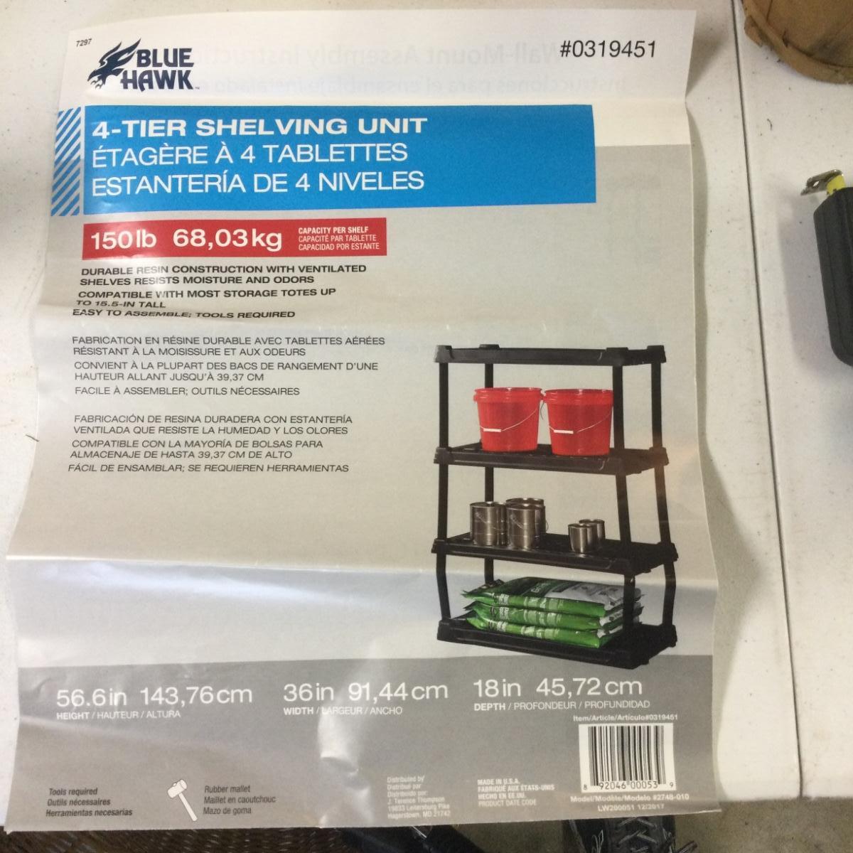 690 Like NEW Blue Hawk Four Tier Shelving Unit