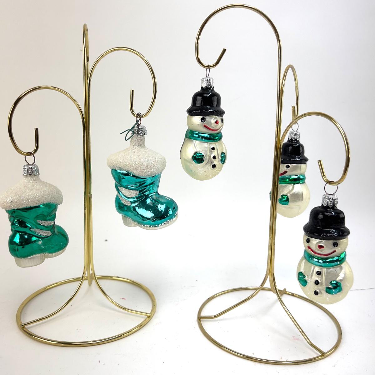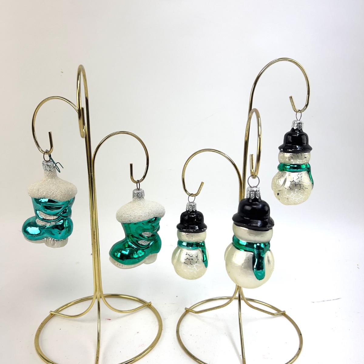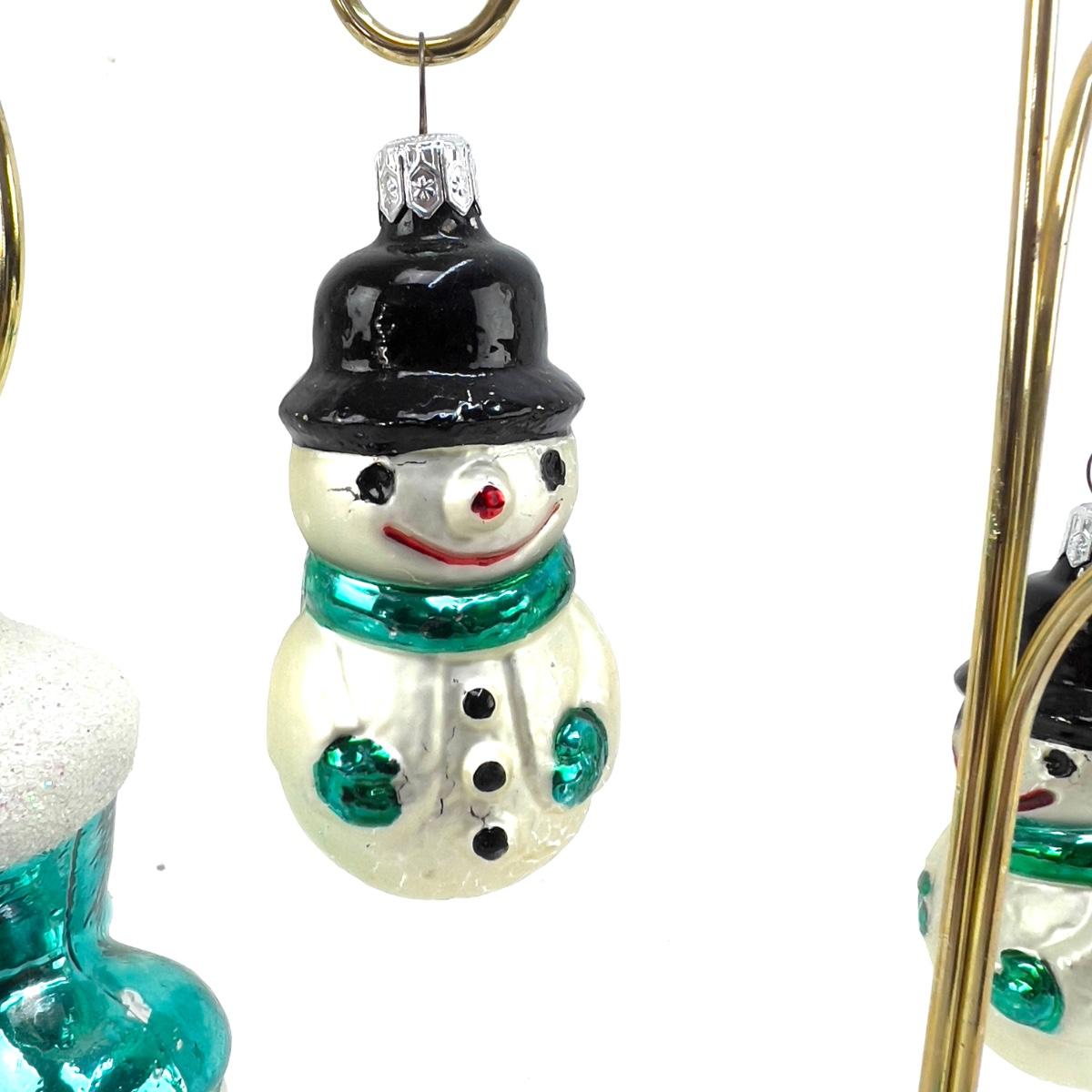 691 Lot of 5 Glass Snowmen and Santa Boots Ornaments