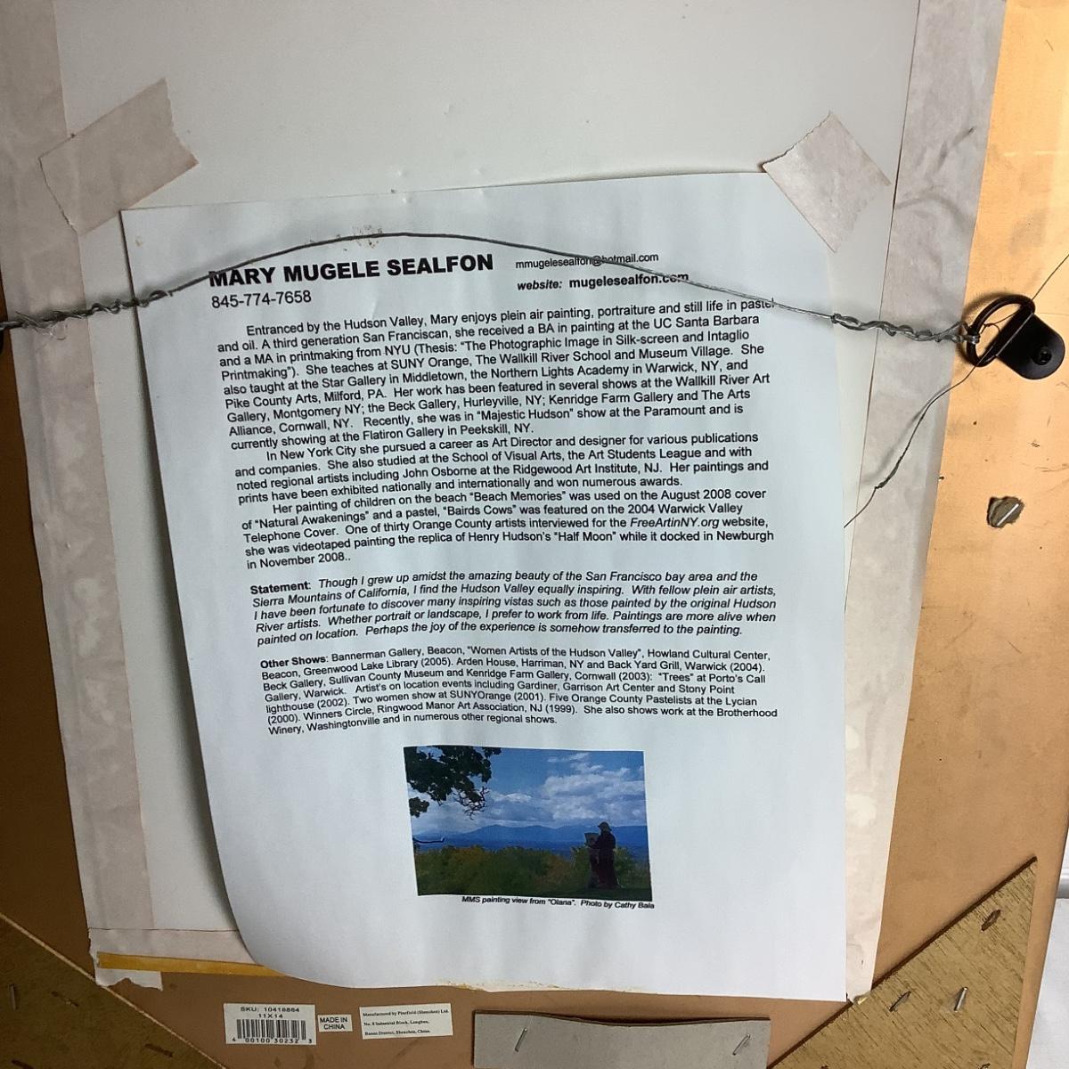 The painting is measures 20" x 16" and there is an artist biography on the back of the painting.