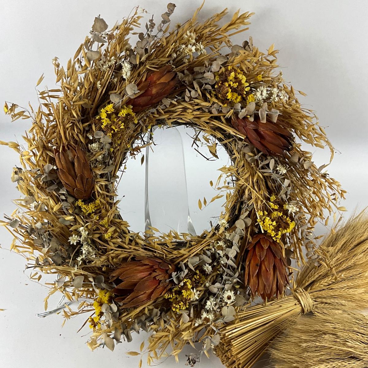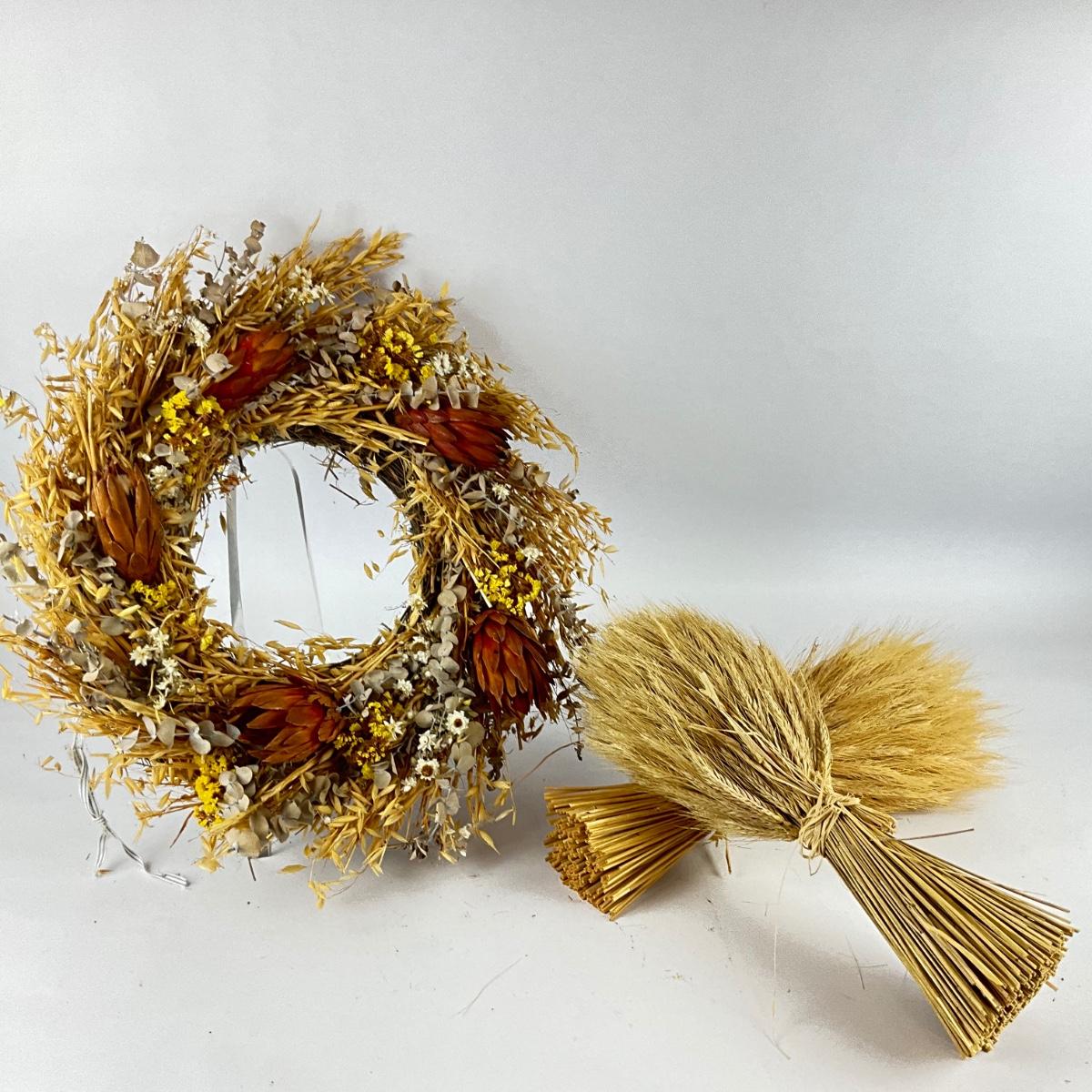 694 Dried Floral Wreath with Two Bunches of Wheat