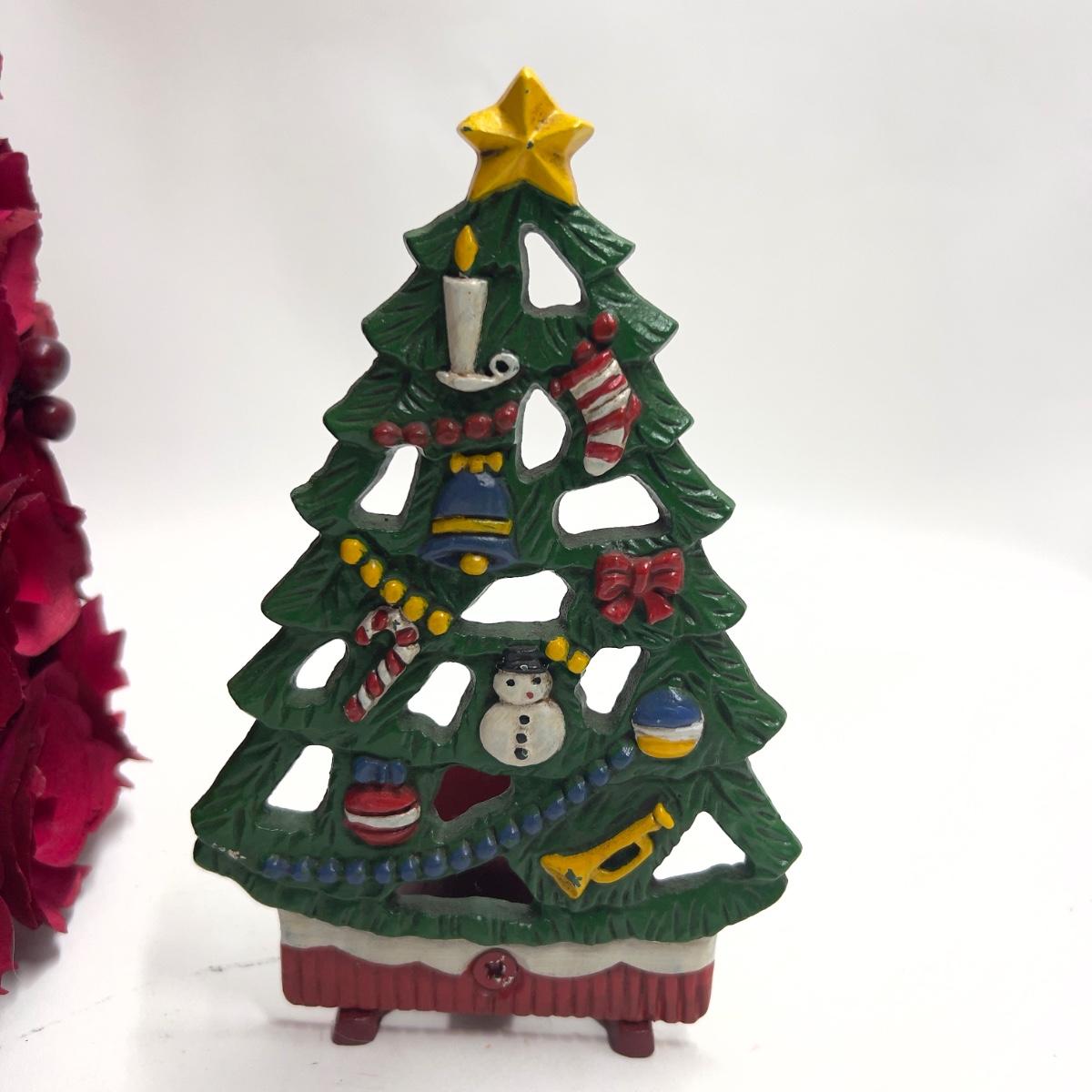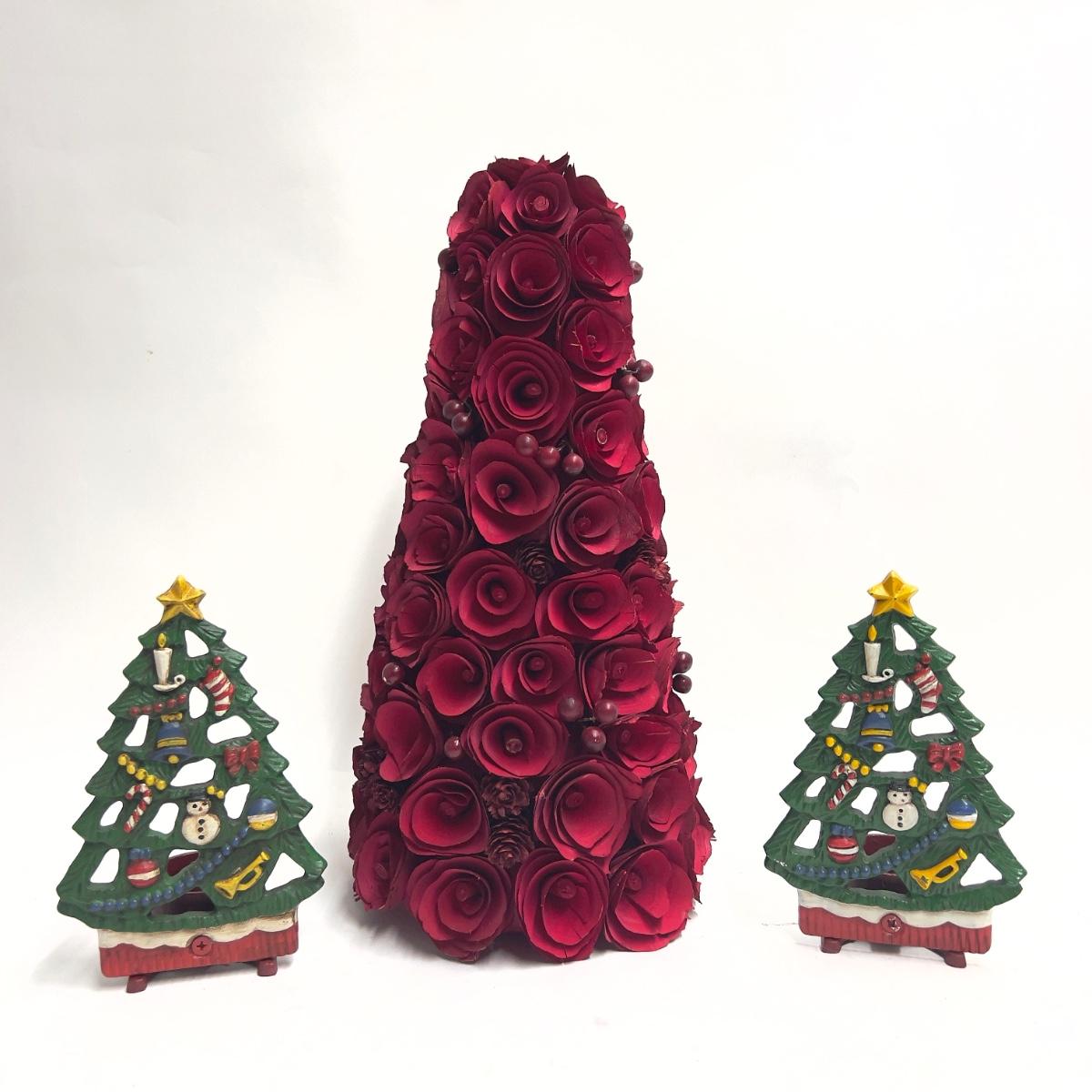 694 Red Smith & Hawken Christmas Pinecone Tree with Iron Tree Votives