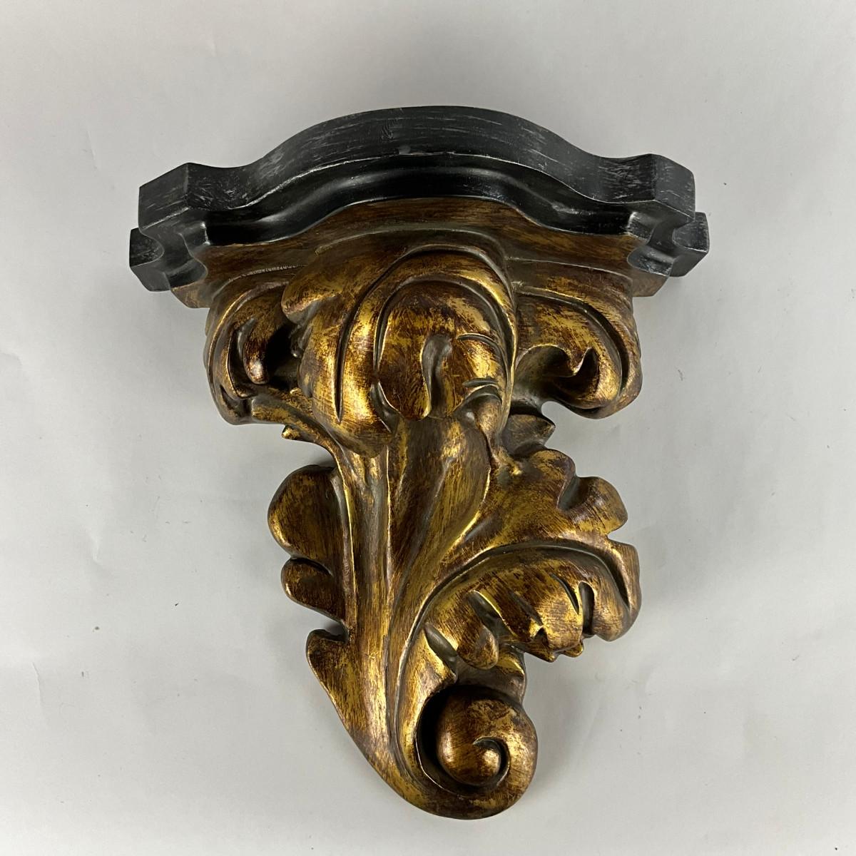Heavy Wood/composite gold and black leaf wall shelf