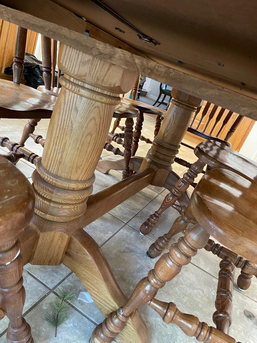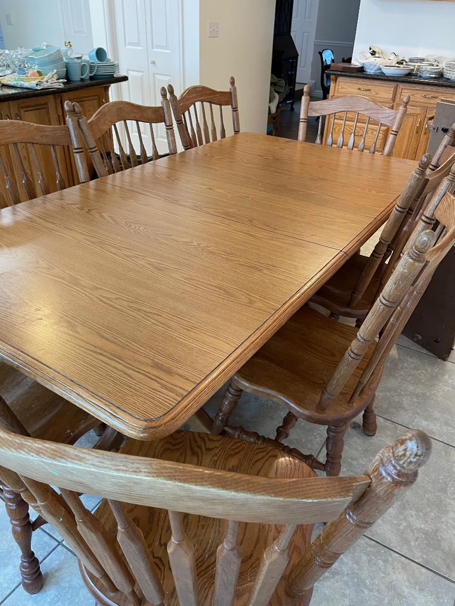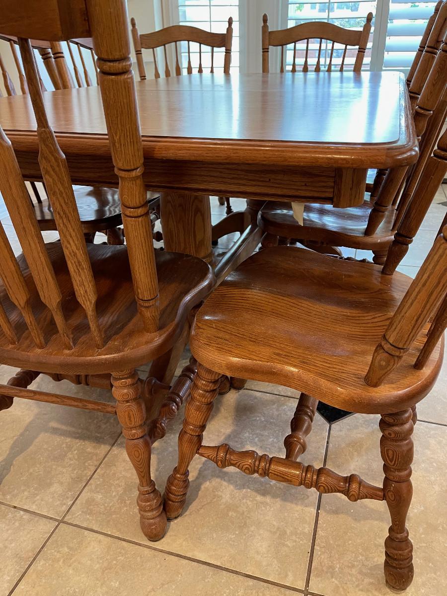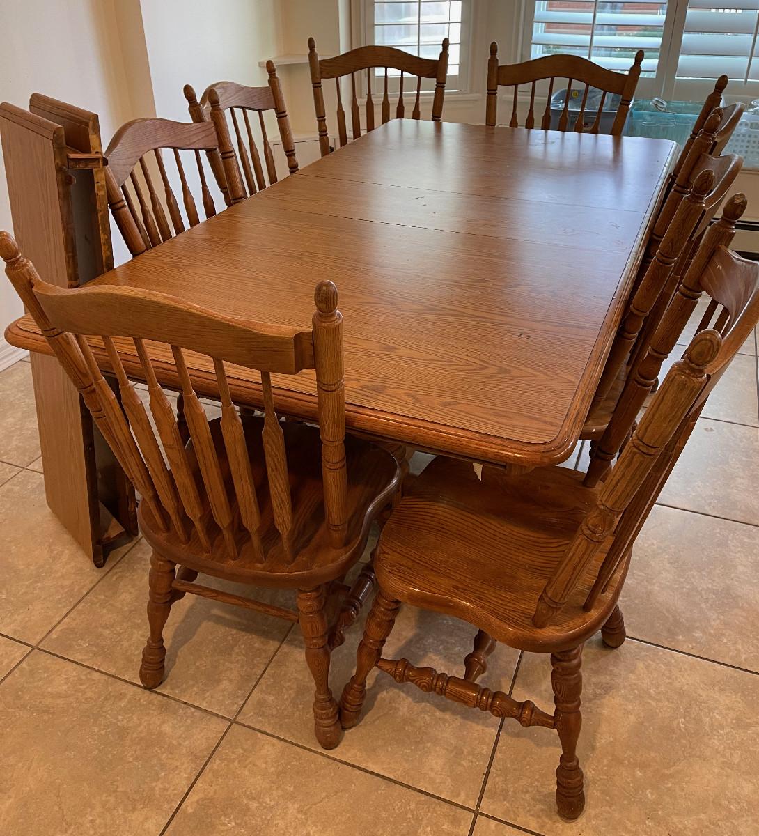#697 Oak Dining Table and 8 Chairs + 3 leaves