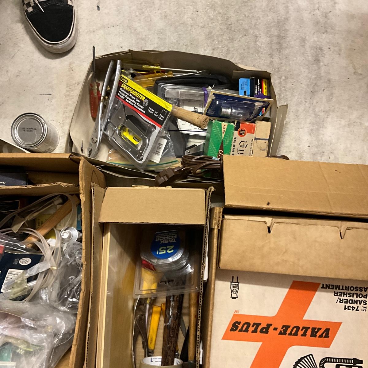 Hammers, socket set, new tape measure staple gun and much more