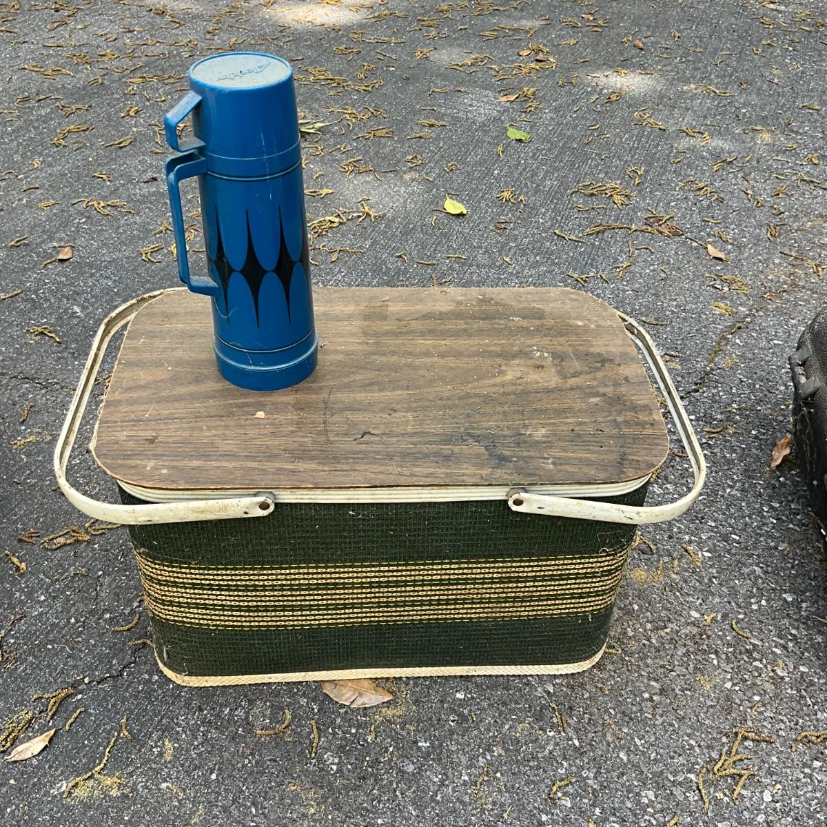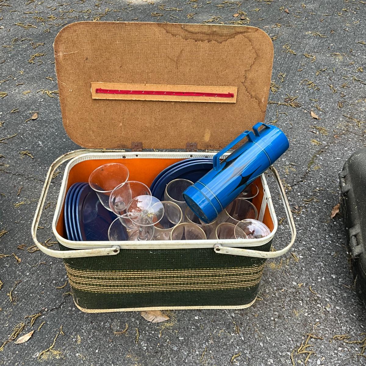 699 Vintage Picnic Basket with Plastic wares and Thermos