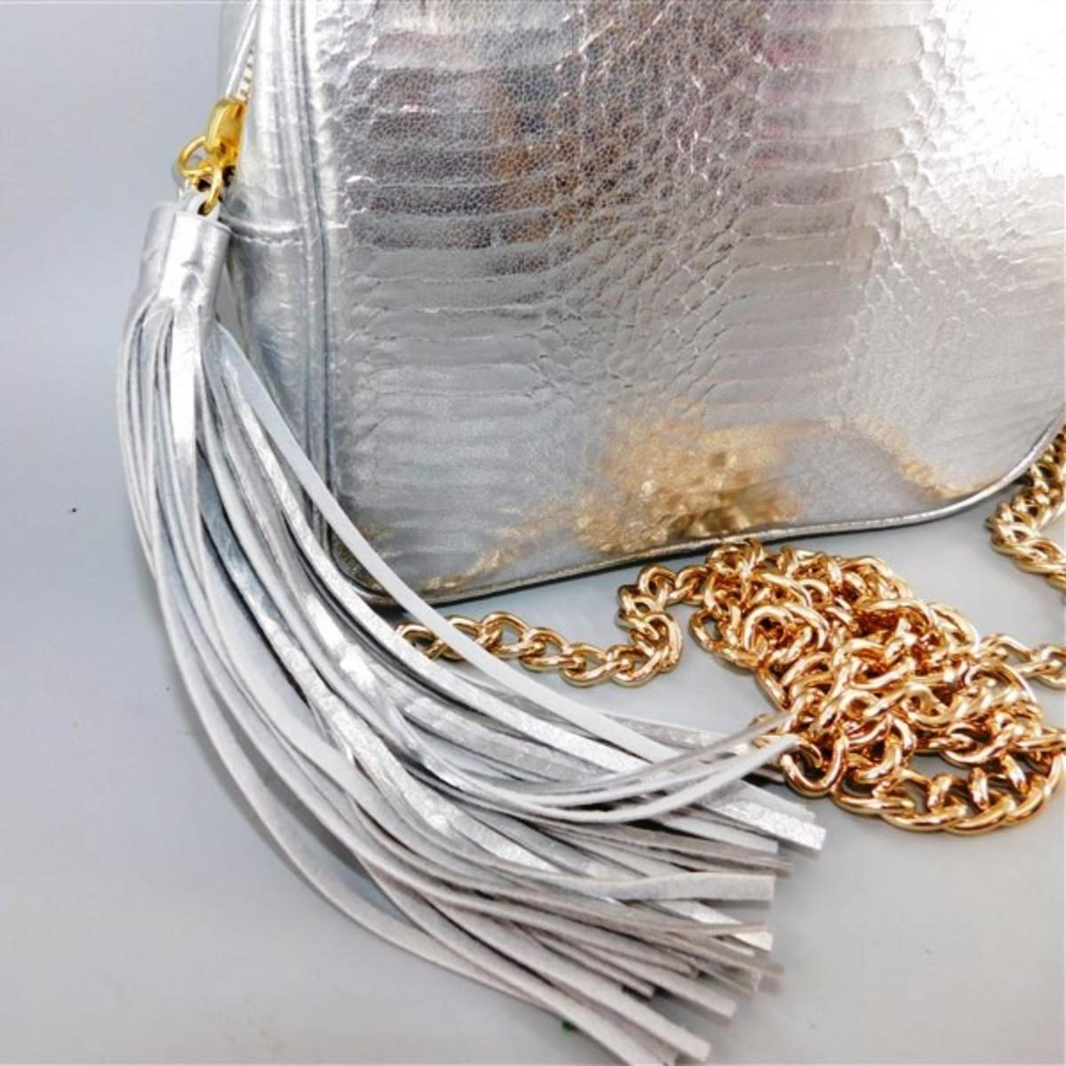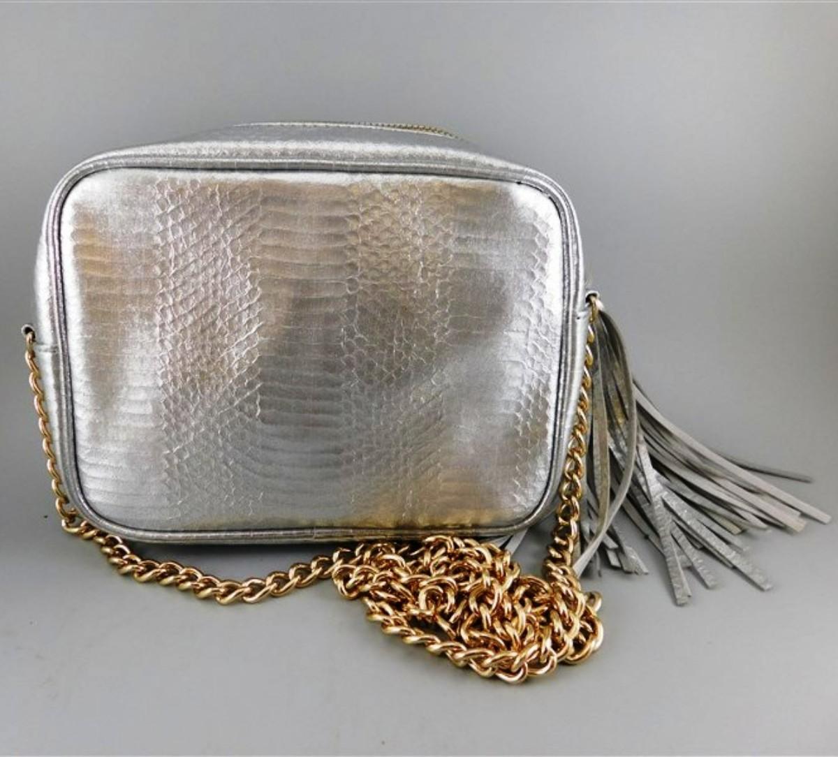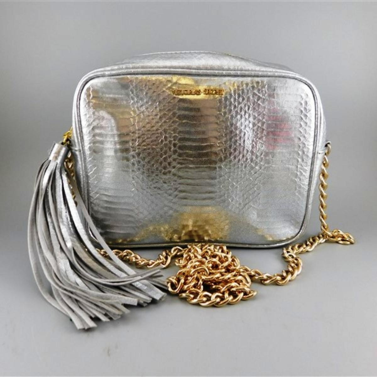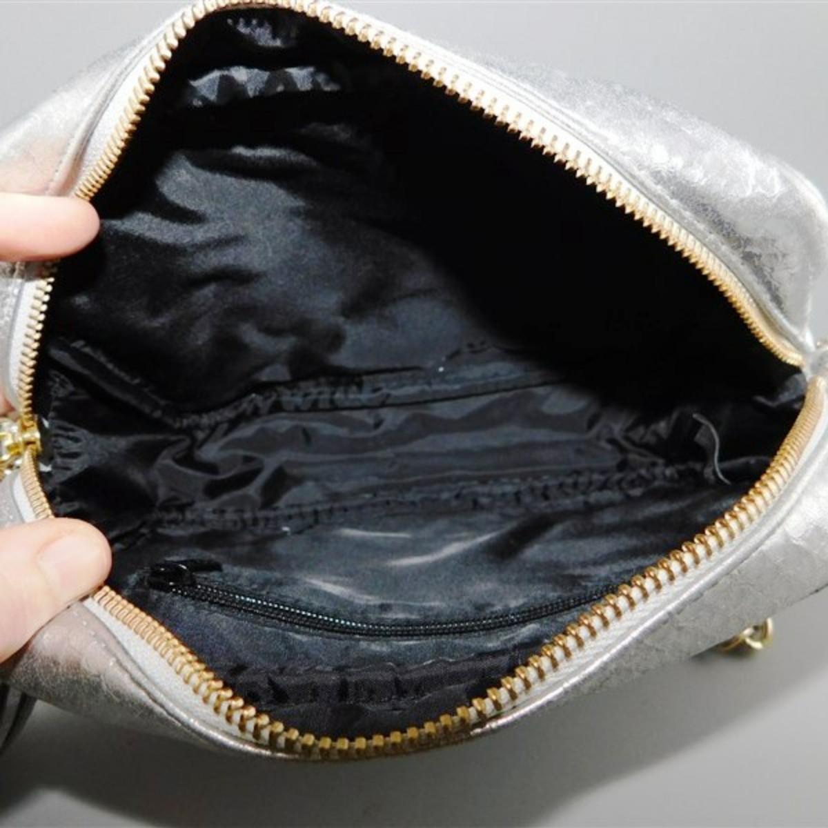 69A Victoria's Secret Silver Metallic Crossbody Purse with Gold Chain Strap