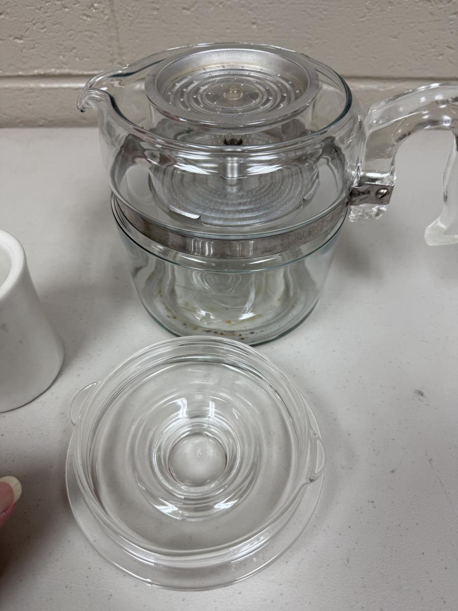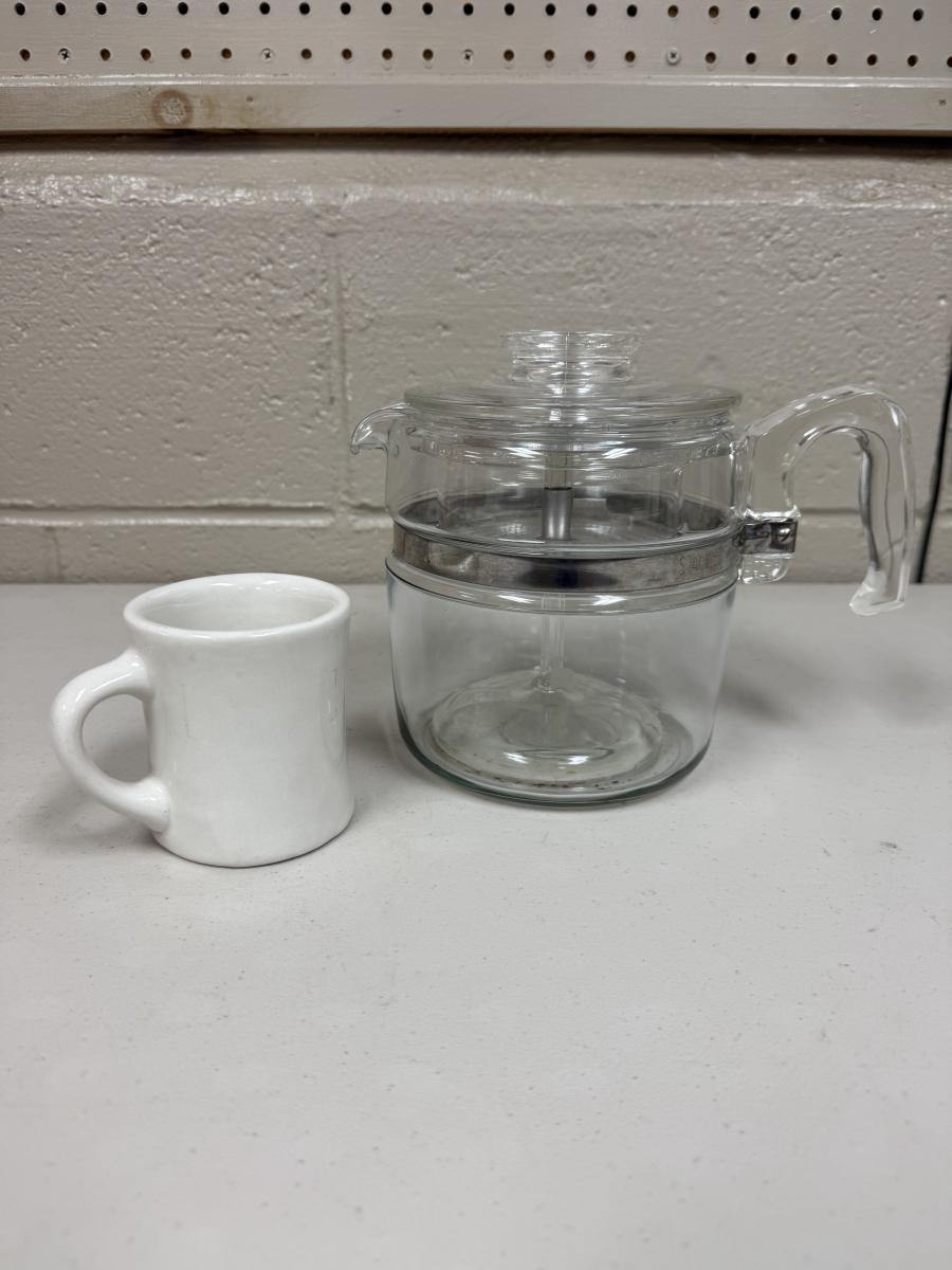 6-Cup Pyrex Coffee Pot Complete, old restaurant mug