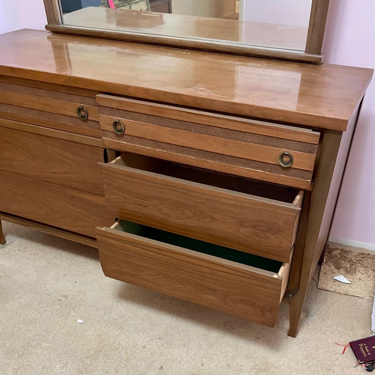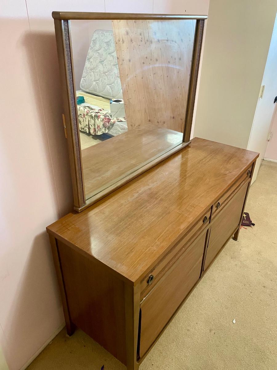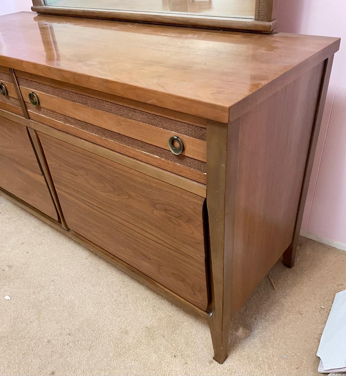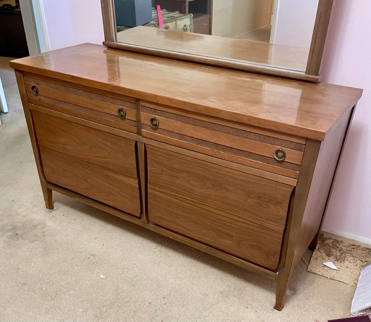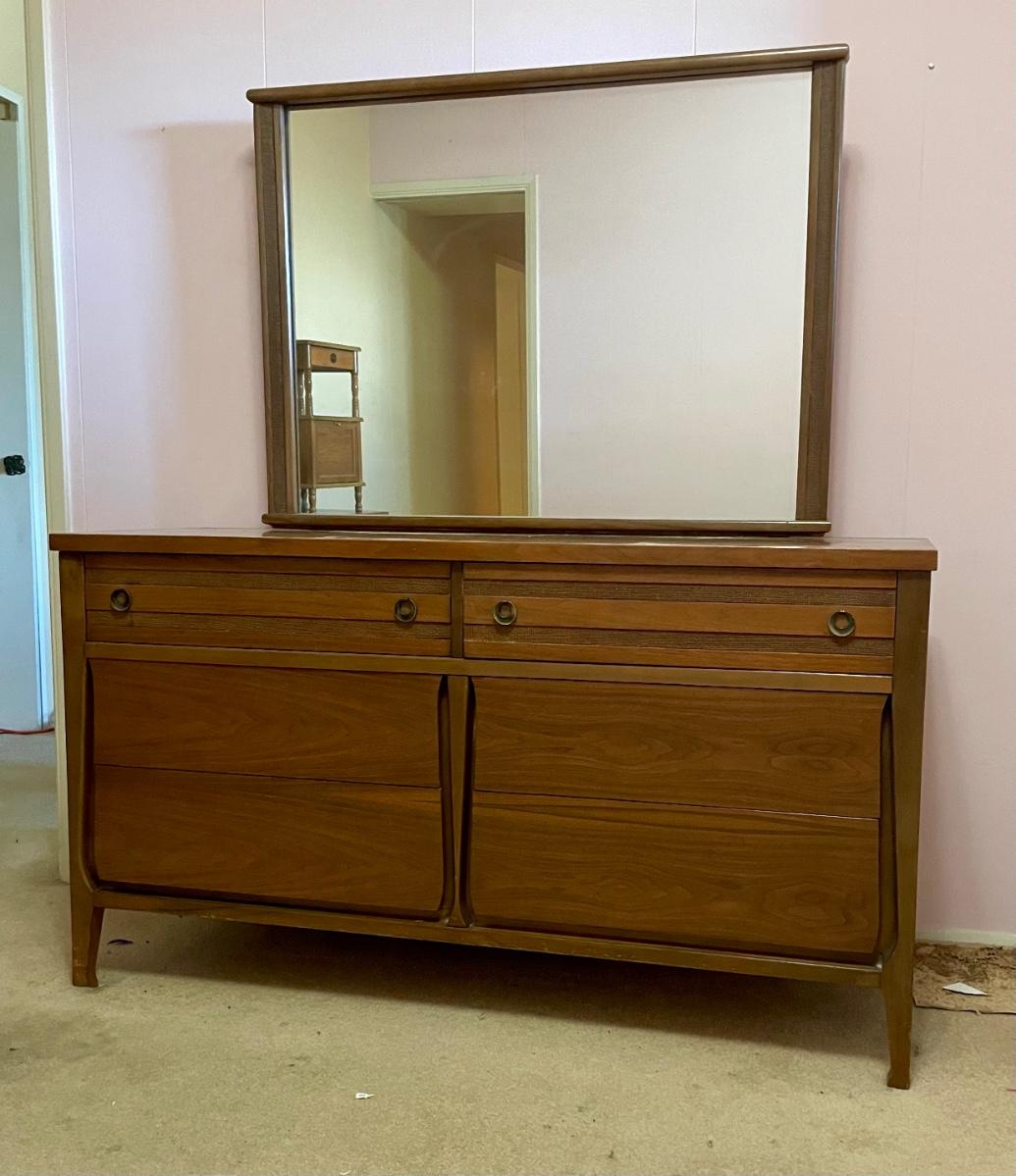 Vintage 6-Drawer Wood Dresser with Mirror Walnut Mid Century