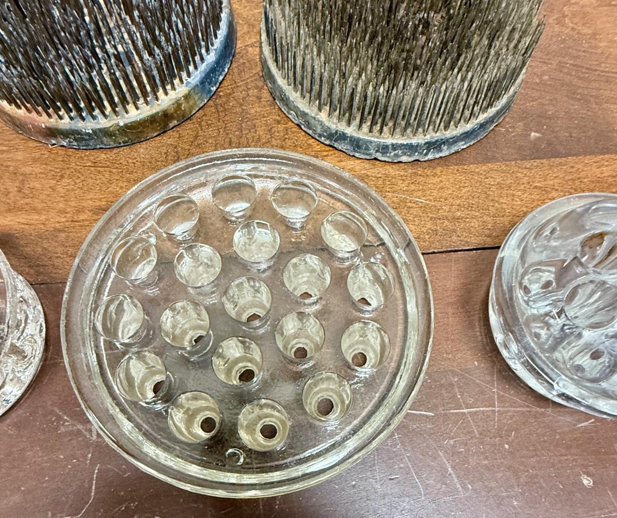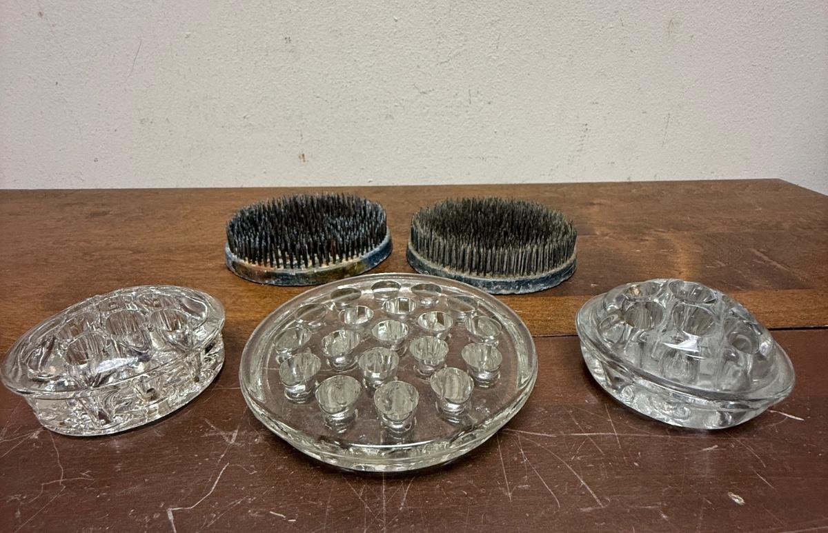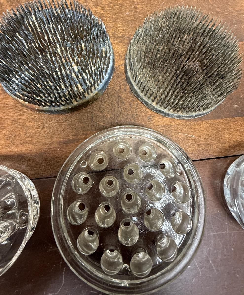 Vintage Flower Frog lot 3 - 3 glass 2 metal