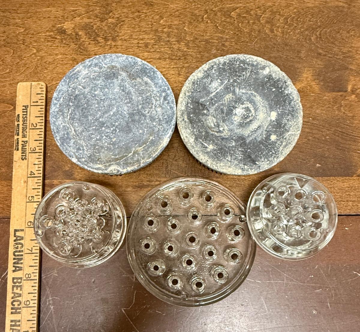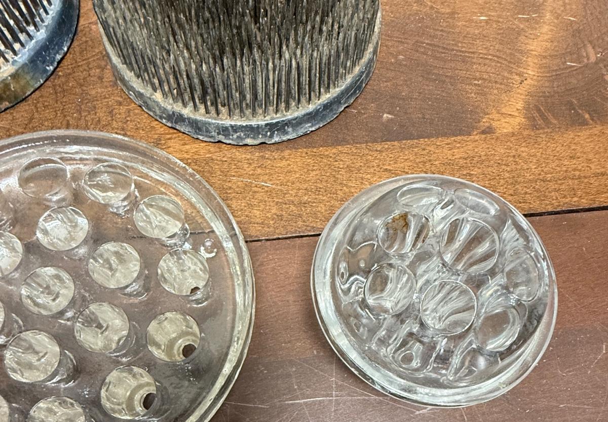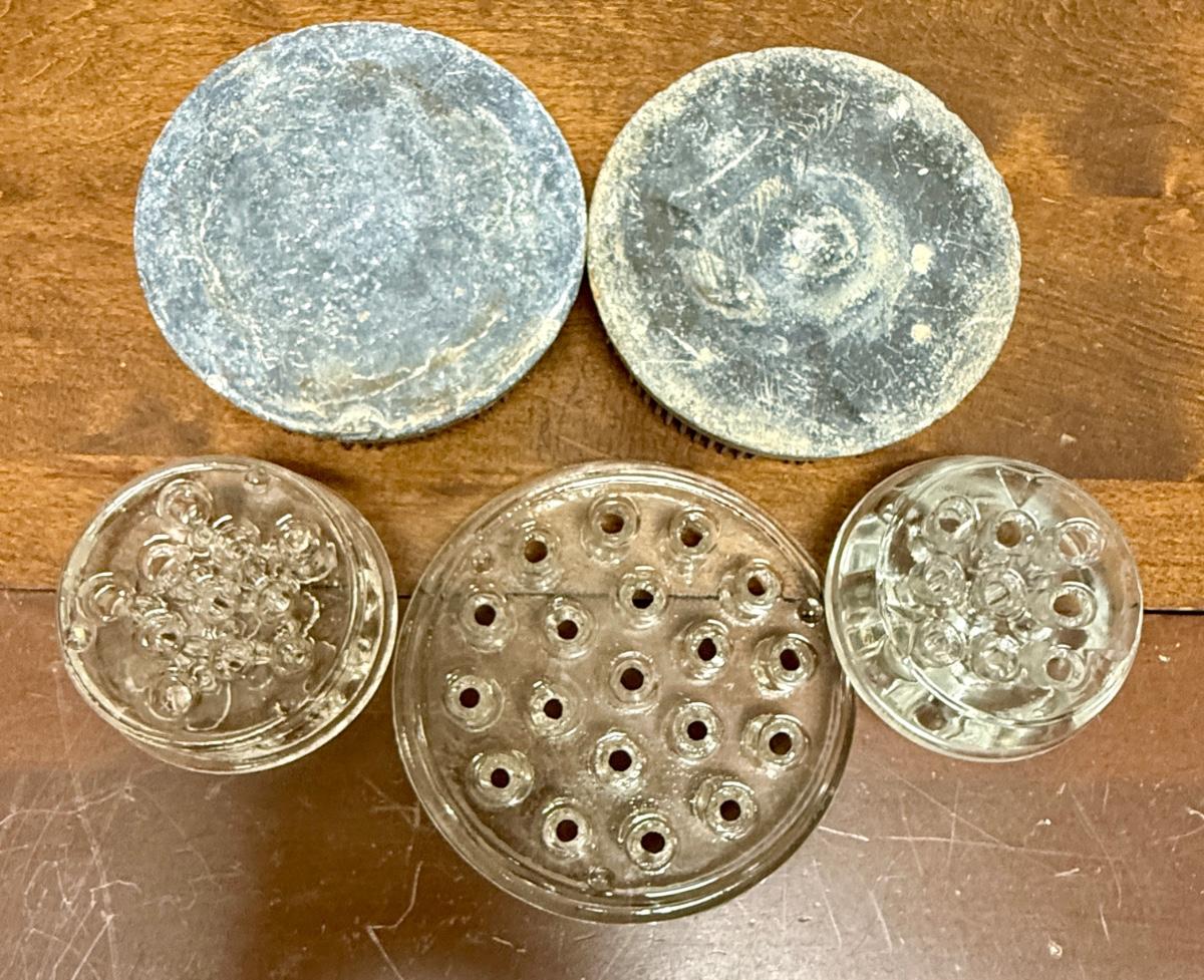 Vintage Flower Frog lot 3 - 3 glass 2 metal