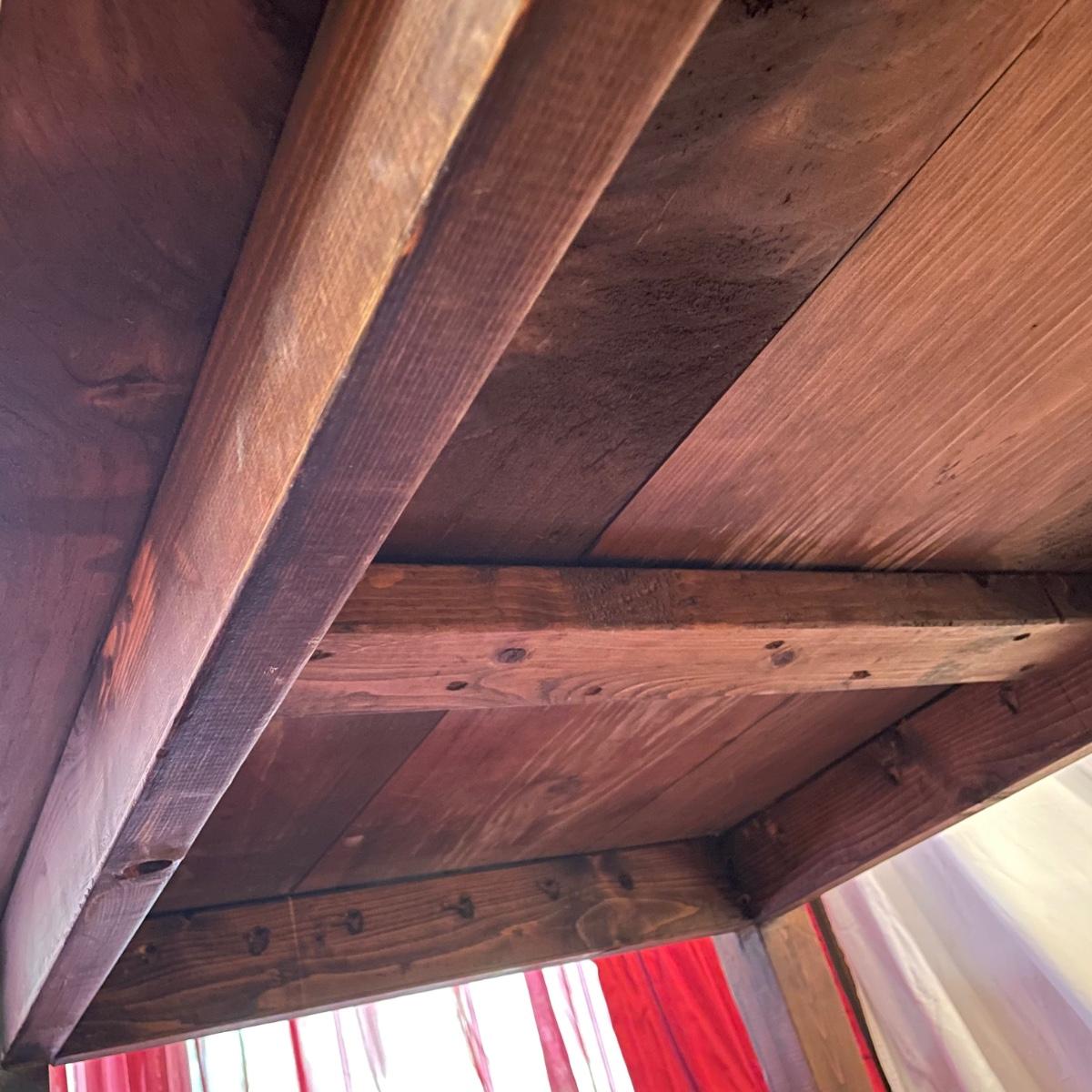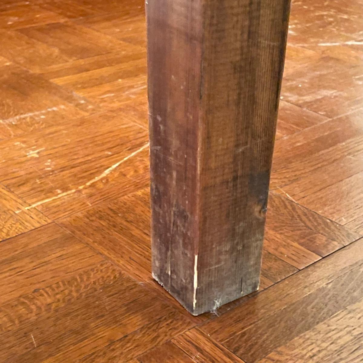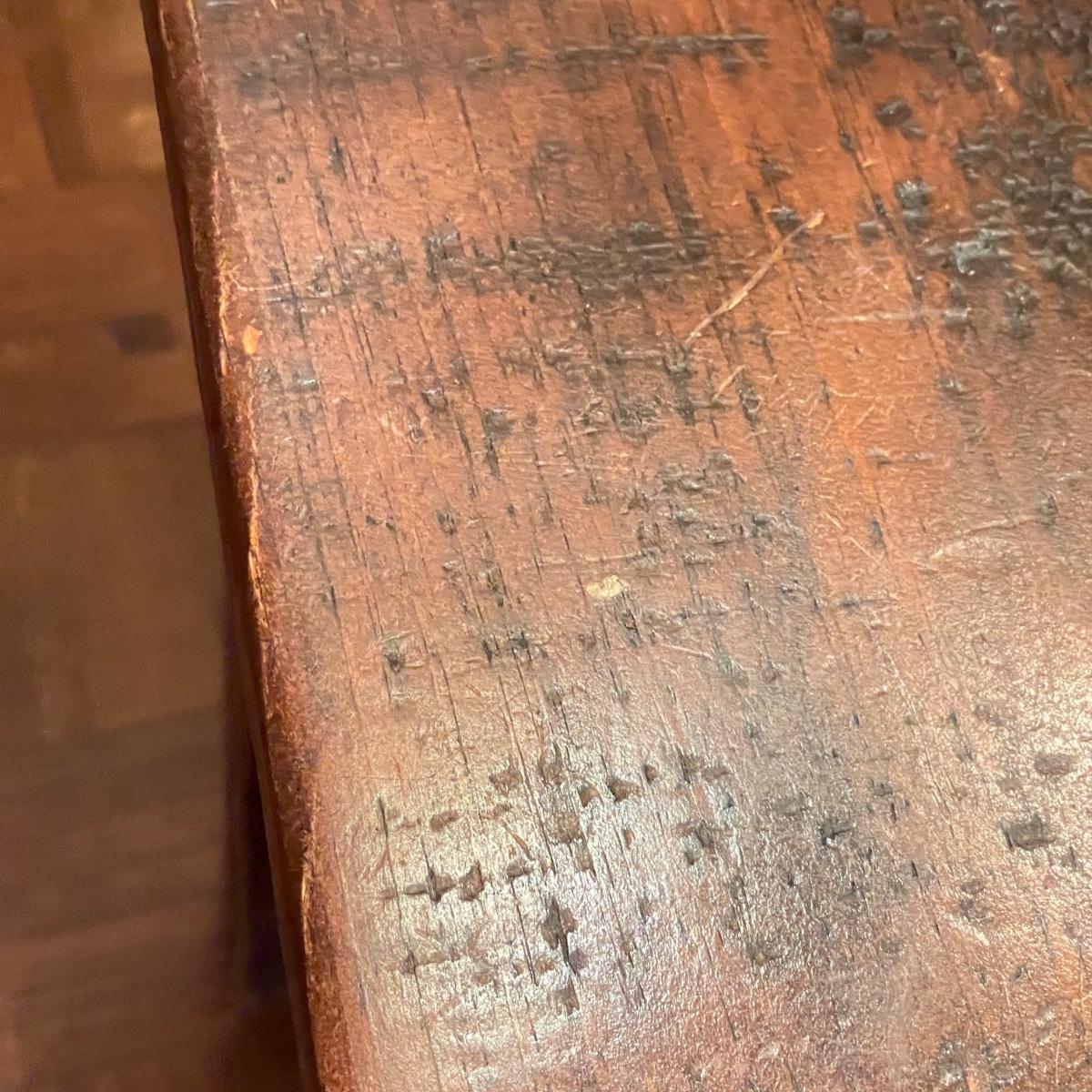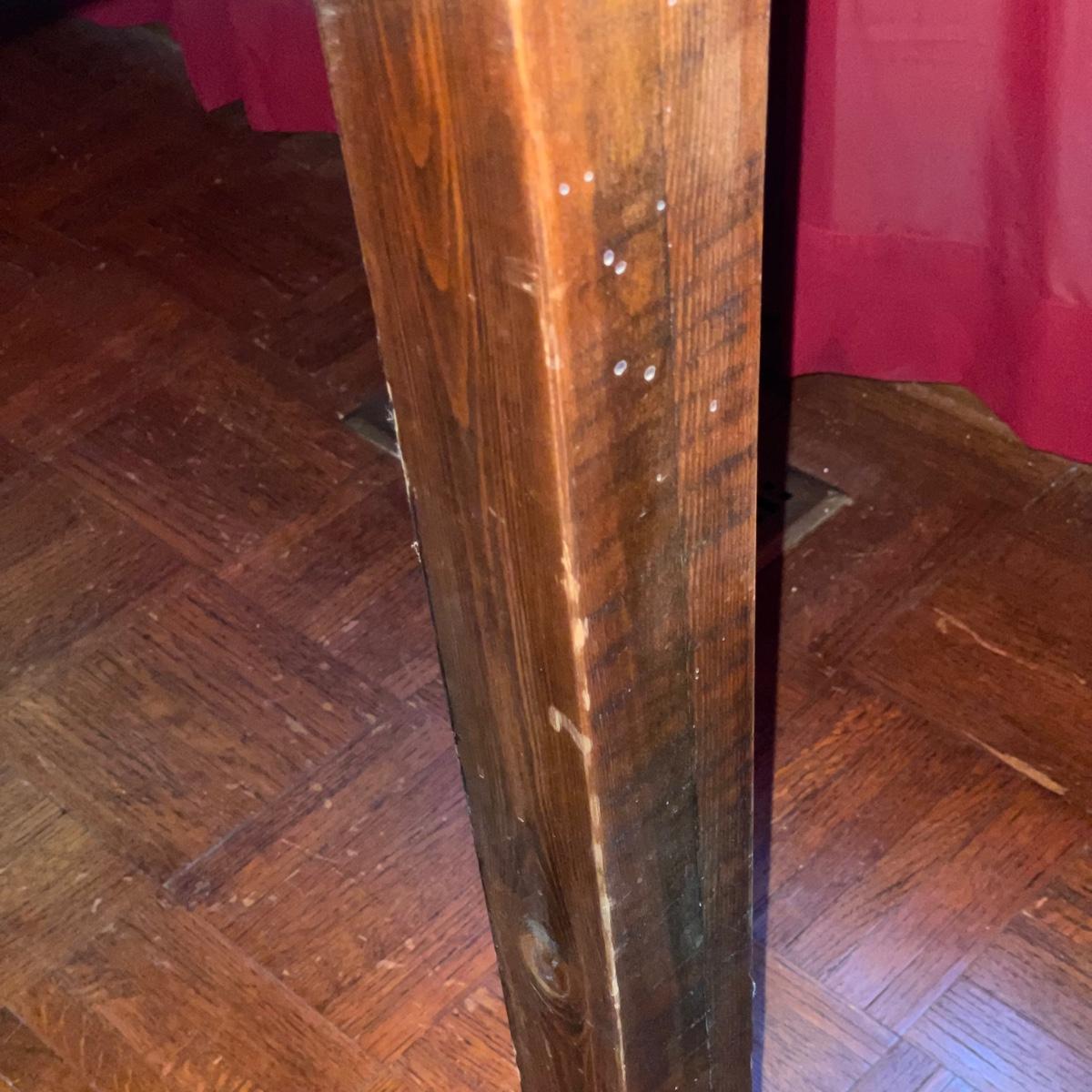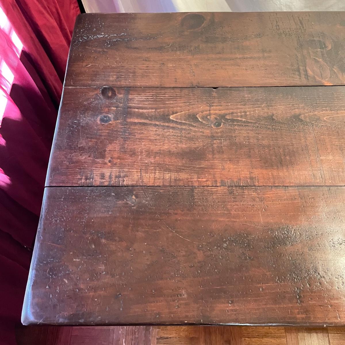 Stunning dark stained farm table. Table does not have extension abilities. Seller states table is Hickory wood. Piece measures 33.75” x 72” x 30”H. Local pick up only. Winning bidder must bring assistance to help move and load this item due to its weight and/or size.