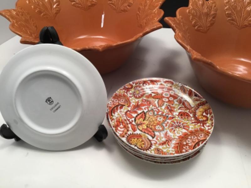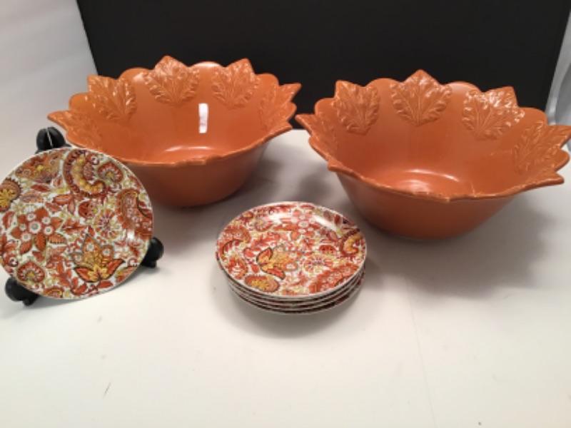 6Paisley Appetizer Plates and 2 Leaf serving bowls