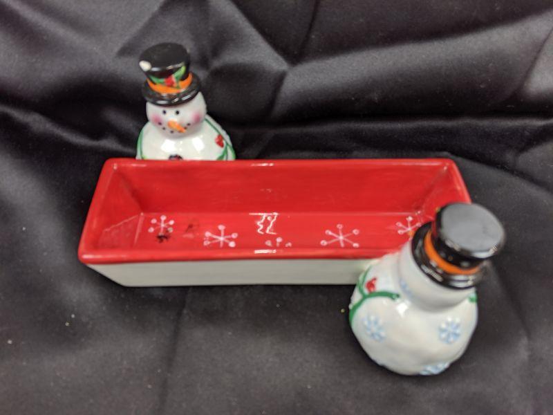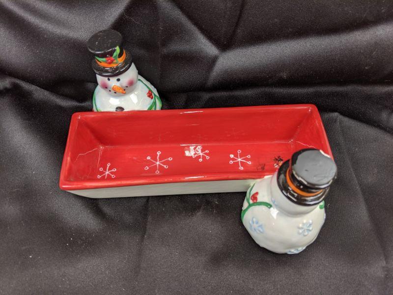 6Pc Christmas Glass Decor - Snowman Tray, Mouse, Crystal Snowman, Figurines, Cat