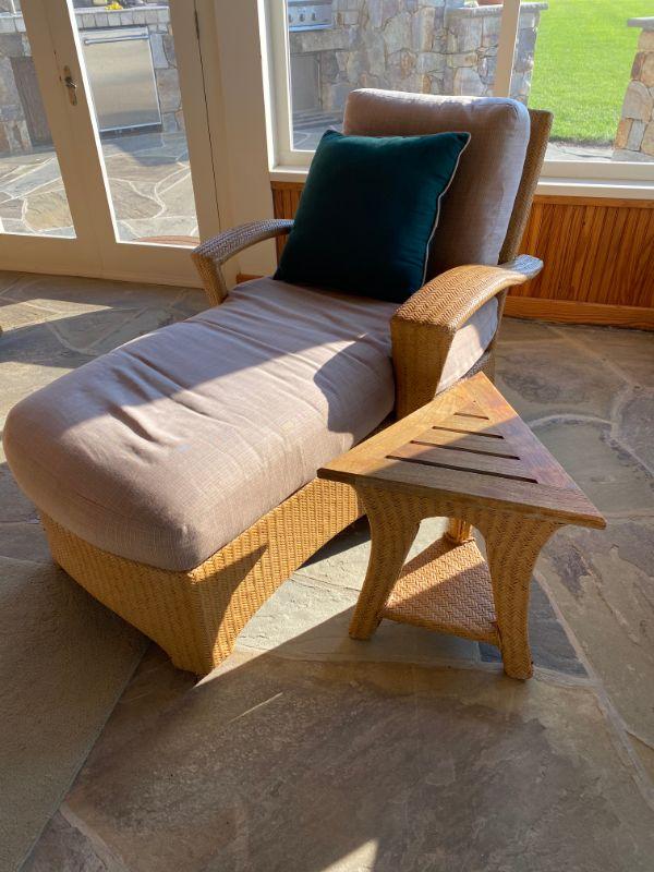 Loveseat, Club Chair, Chaise, Two Triangular Shaped End Tables, and Coffee Table