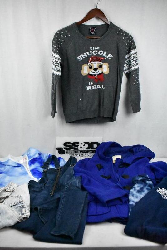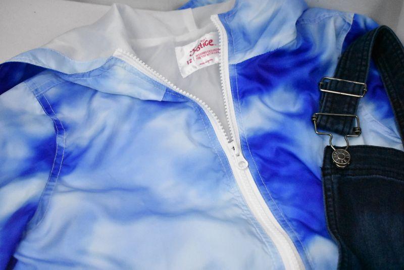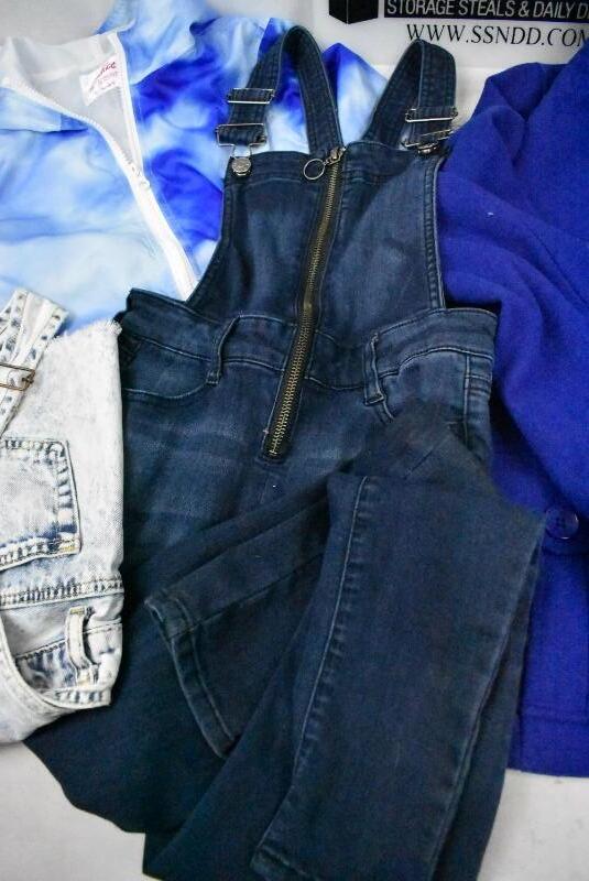 6pc Girl's Clothes: 2 overalls, 2 jackets, 1 sweater, 1 sweatpants