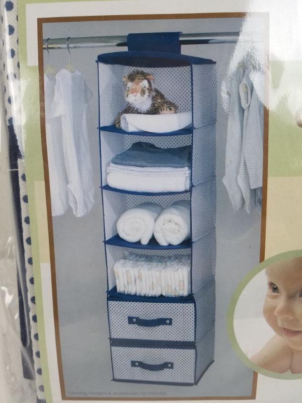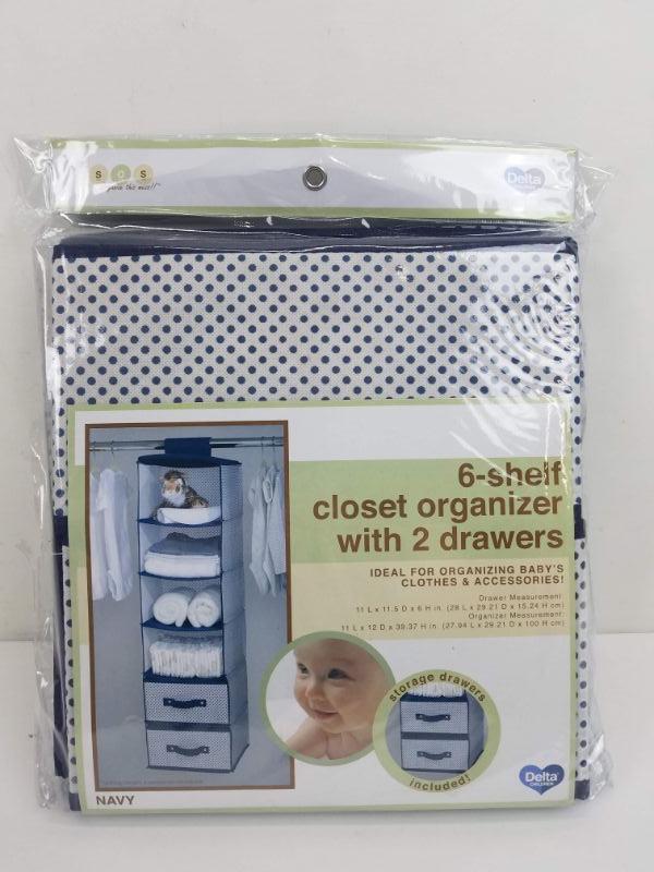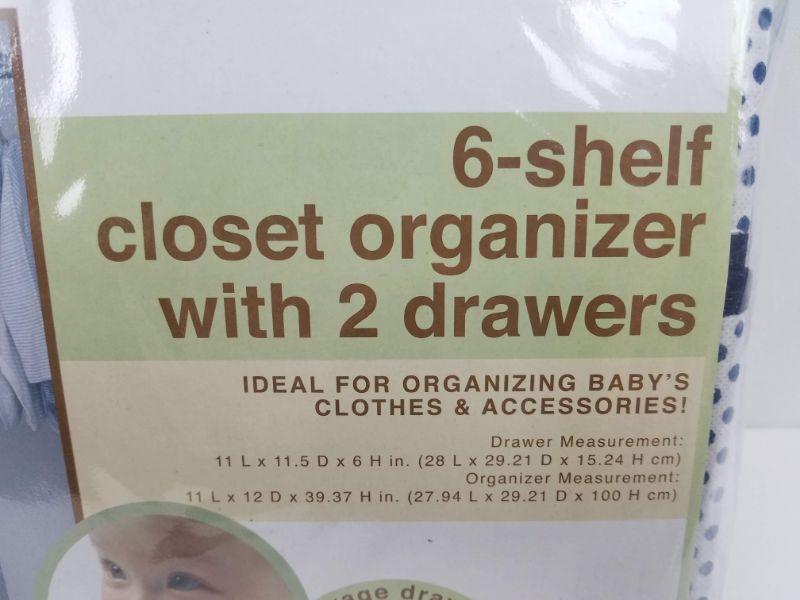 6-Shelf Closet Organizer with 2 Drawers, Navy & White - New