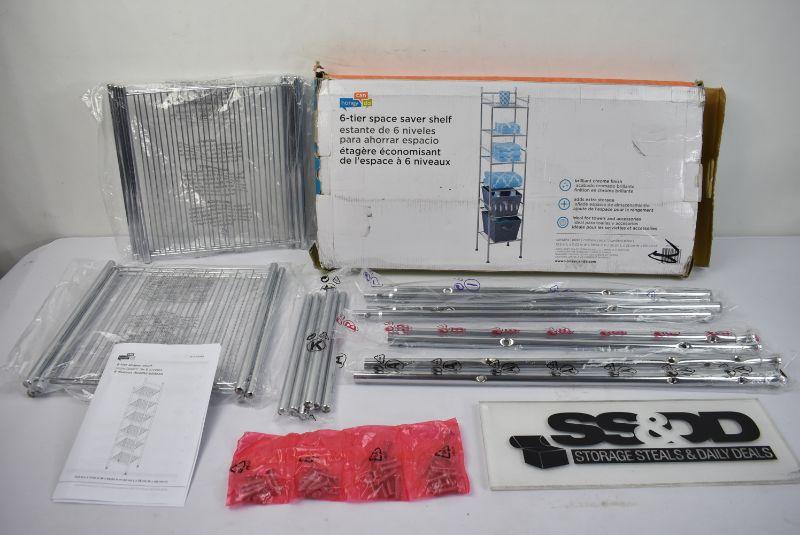6-Tier Bathroom Storage Shelving Unit, Chrome - pieces missing - consider as 3 tier