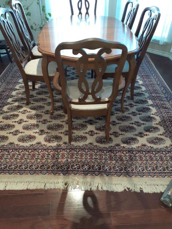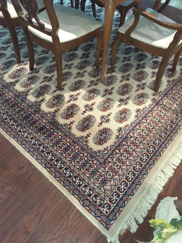 VERY NICE AREA RUG THICK AND WELL MADE. NO STAINS OR RIPS OR SNAGS..