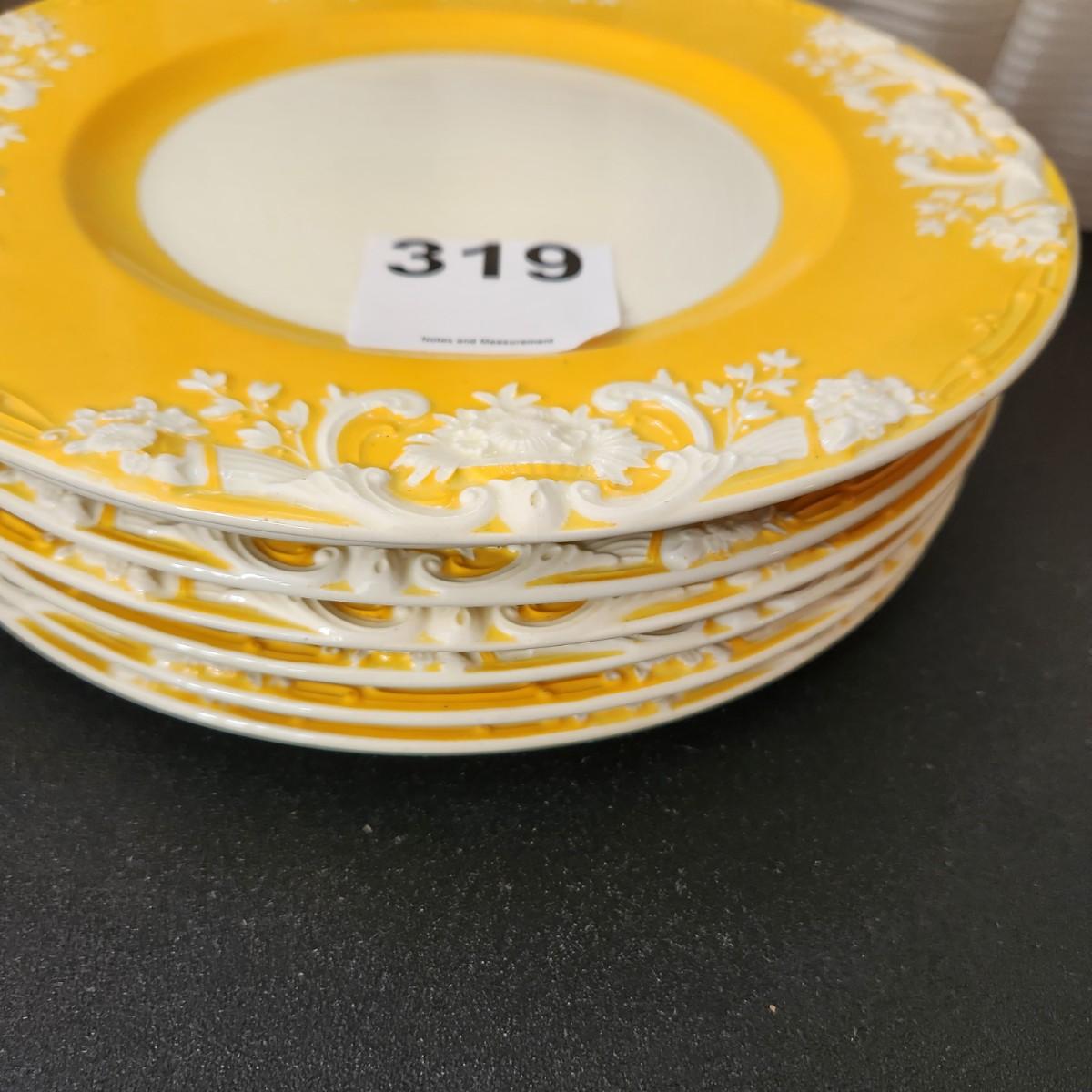 7 10.5" Plates Yellow Marlborough George Jones & Sons England