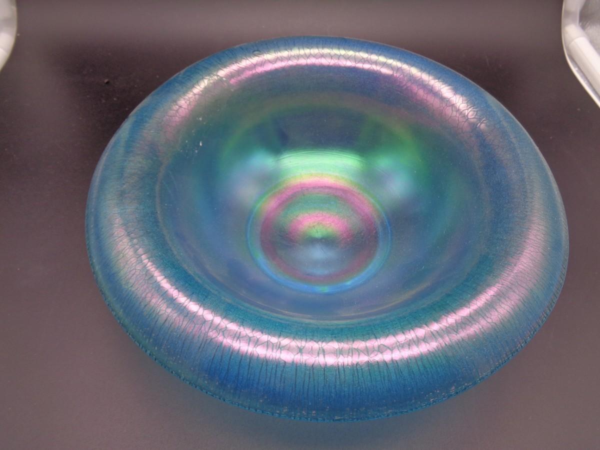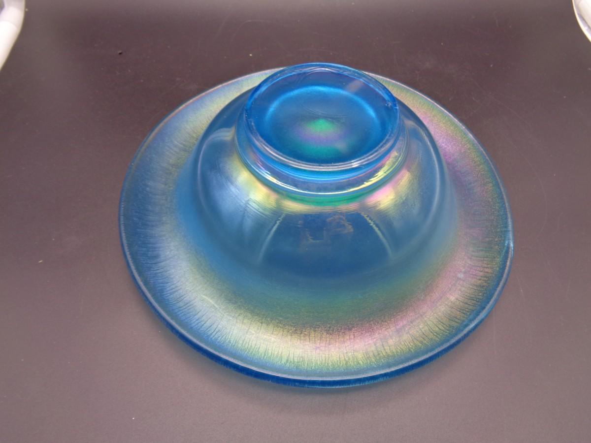 7 1/2" Northwood Celeste BI Carnival Stretch Glass Rolled Edge Bowl #58