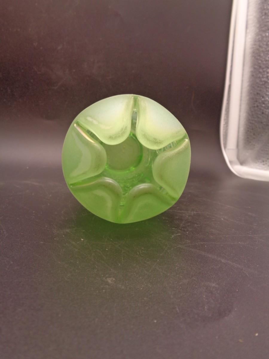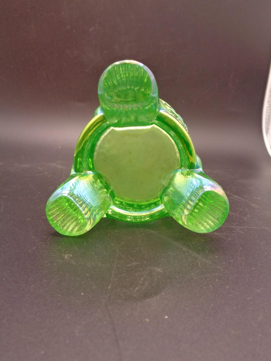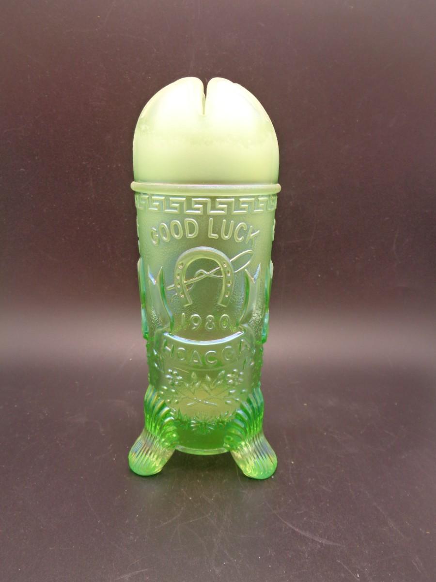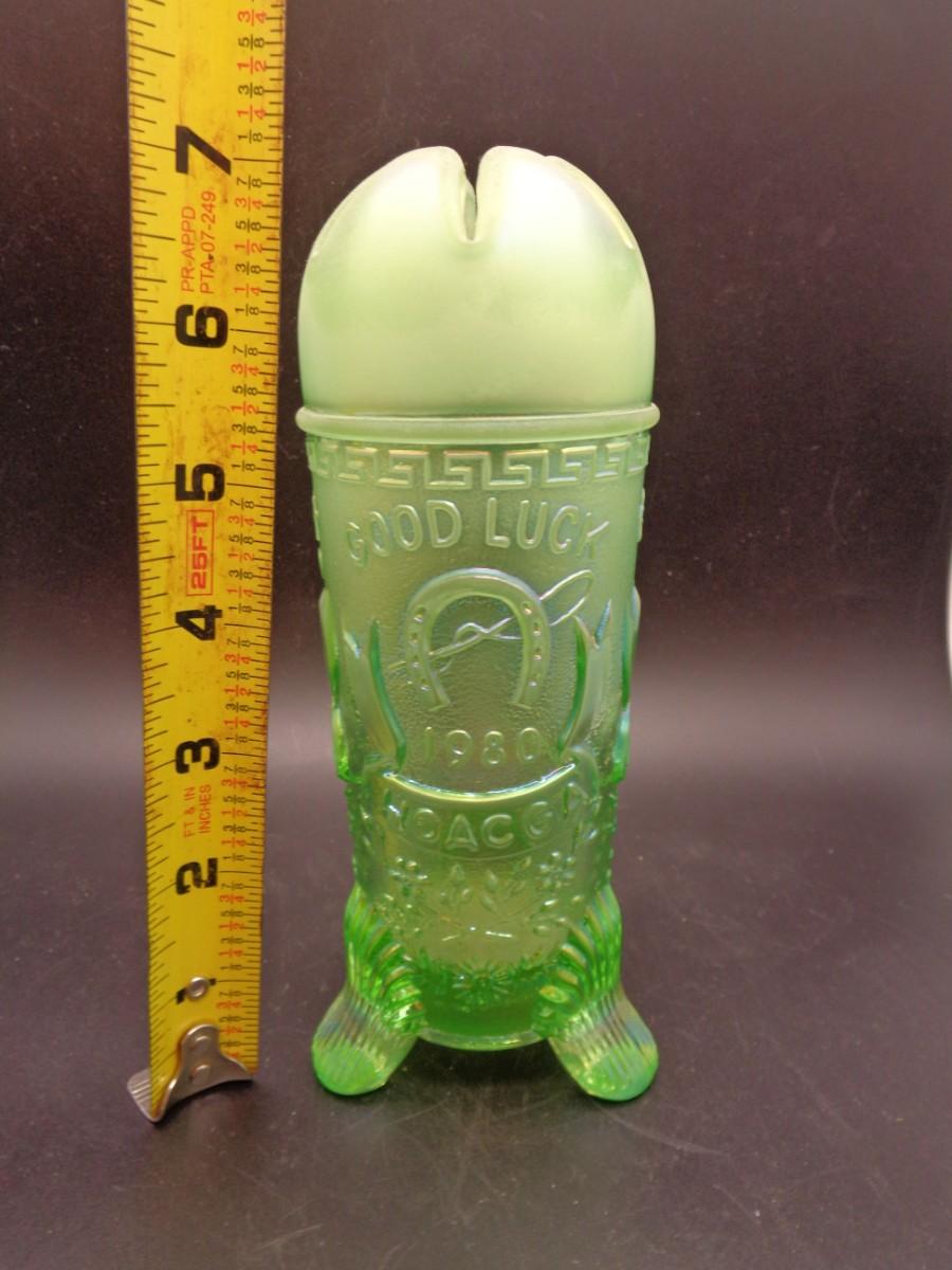 7 1/4 Fenton Green Opalescent "Good Luck" Hat Pin Holder HOAGA 1980 #103