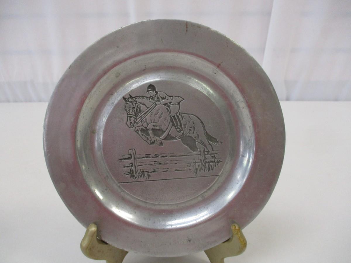 7 1/4" Pewter Plate Georgetown Saddle Club Etched Horse Jumping