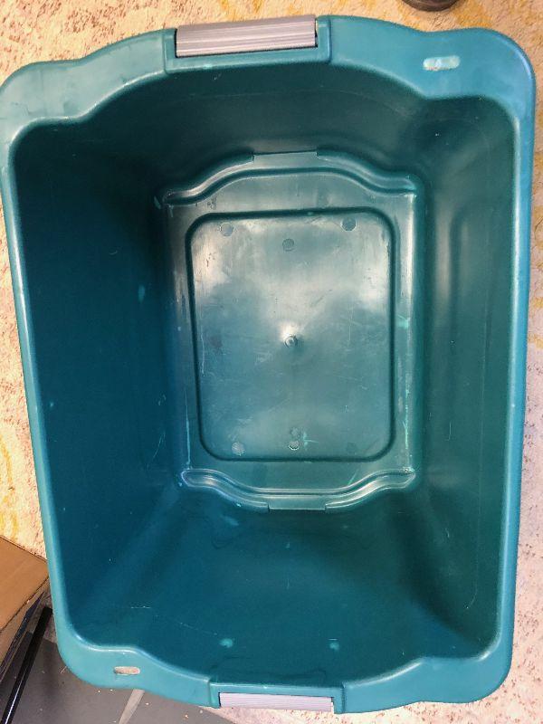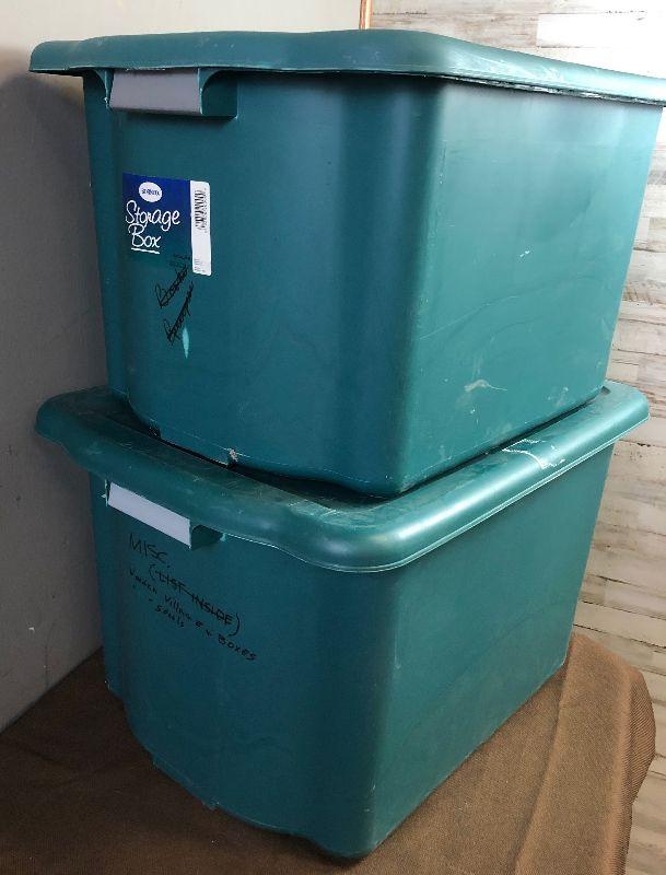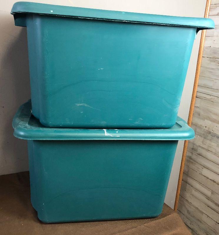 #7 (2) 20 Gallon Storage tubs with lid. Green