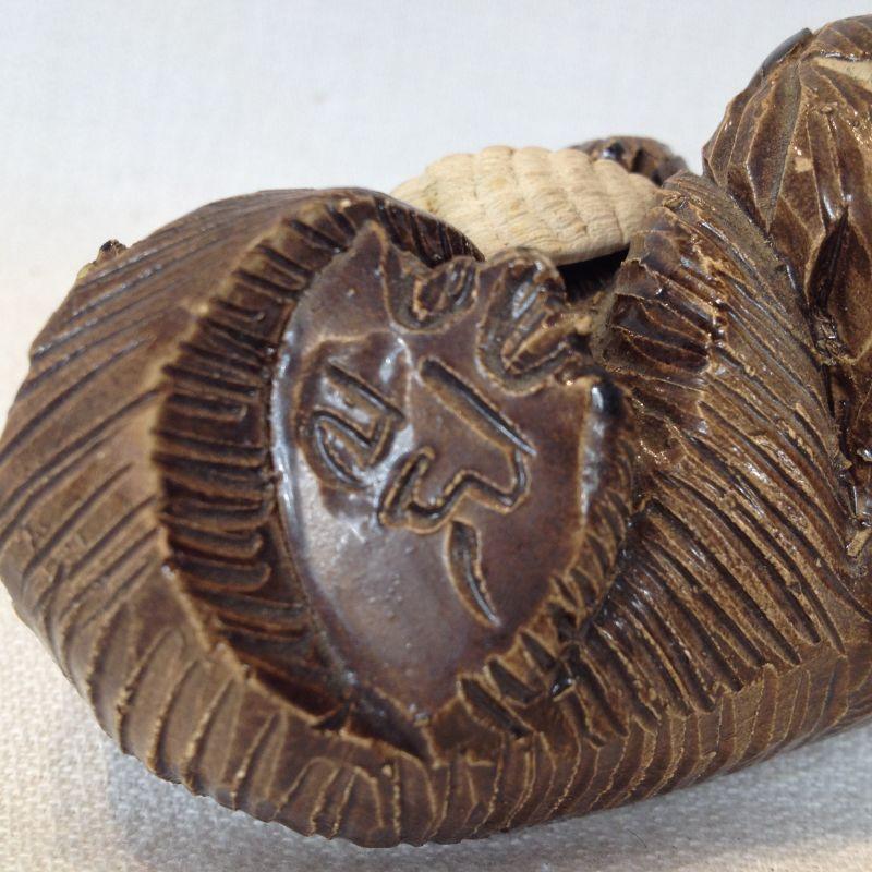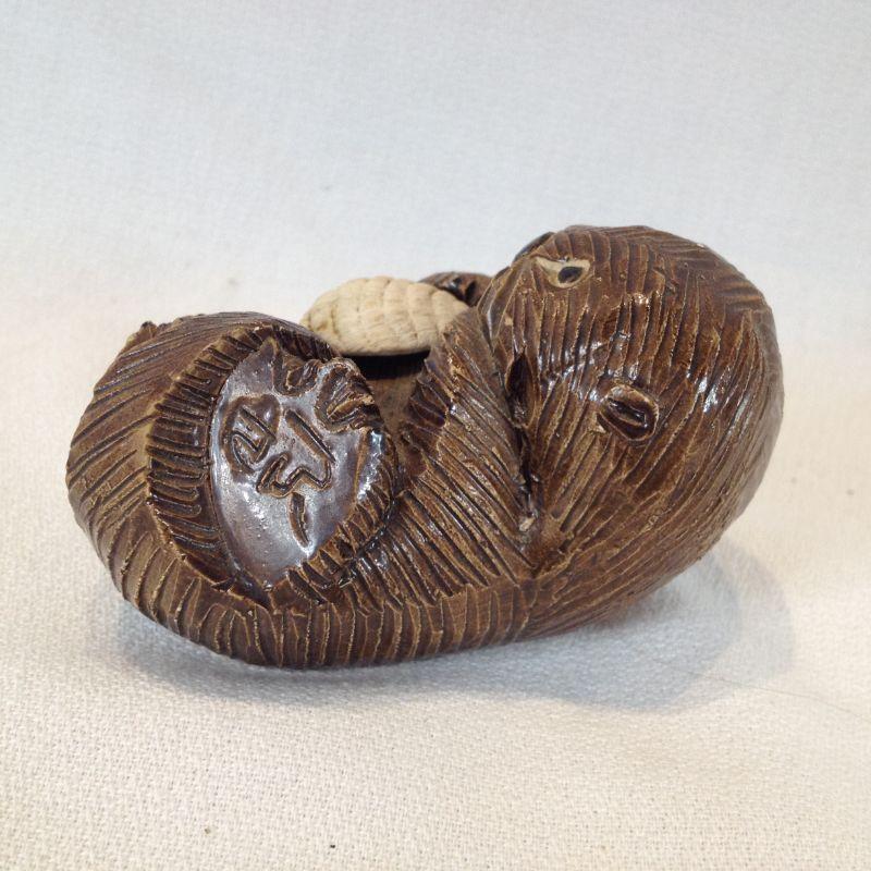 This lot is for an Inuit/Eskimo statue carved to resemble a baby seal playing with a shell. This is a wonderful tourist piece - most likely purchase in the Northwestern area of North America. The Inuit, or Eskimo, are aboriginal people who make their homes in the Arctic and subarctic regions of Siberia and North America - including Alaska This appears to be carved from some type of formed pottery. It is signed with a Inuit design.