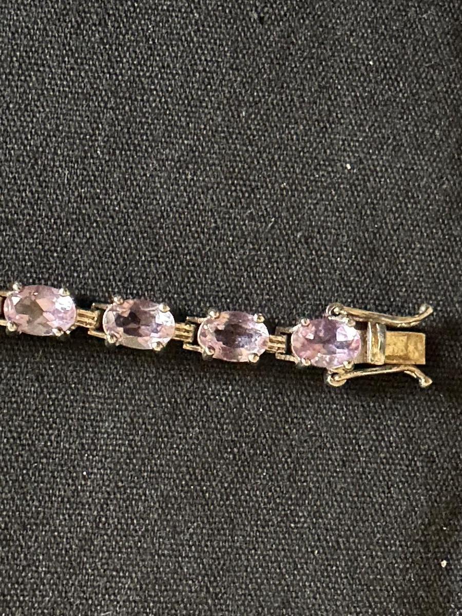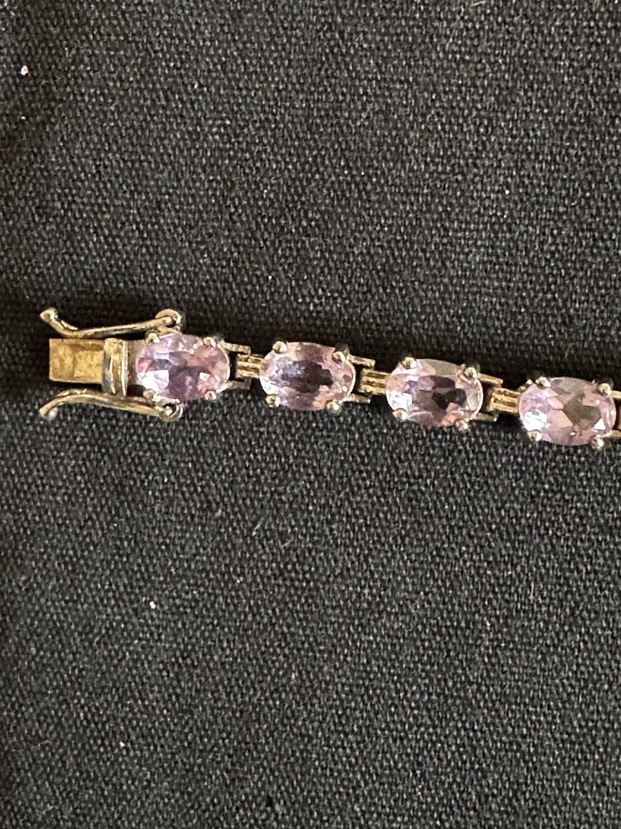 7” .925 STERLING SILVER BRACELET WITH LIGHT PURPLE AMETHYST STONES