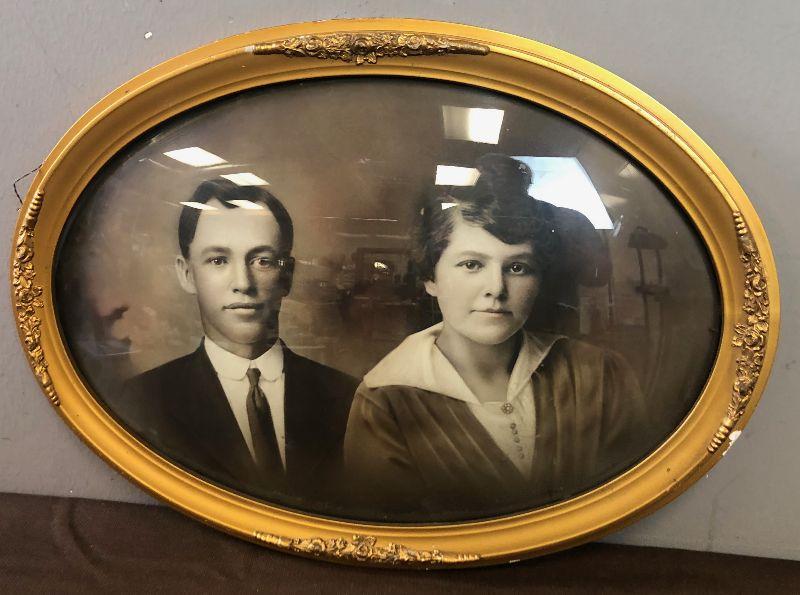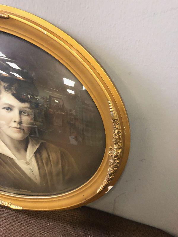 #7 Antique Oval Framed Bubble Glass Black and White Photo