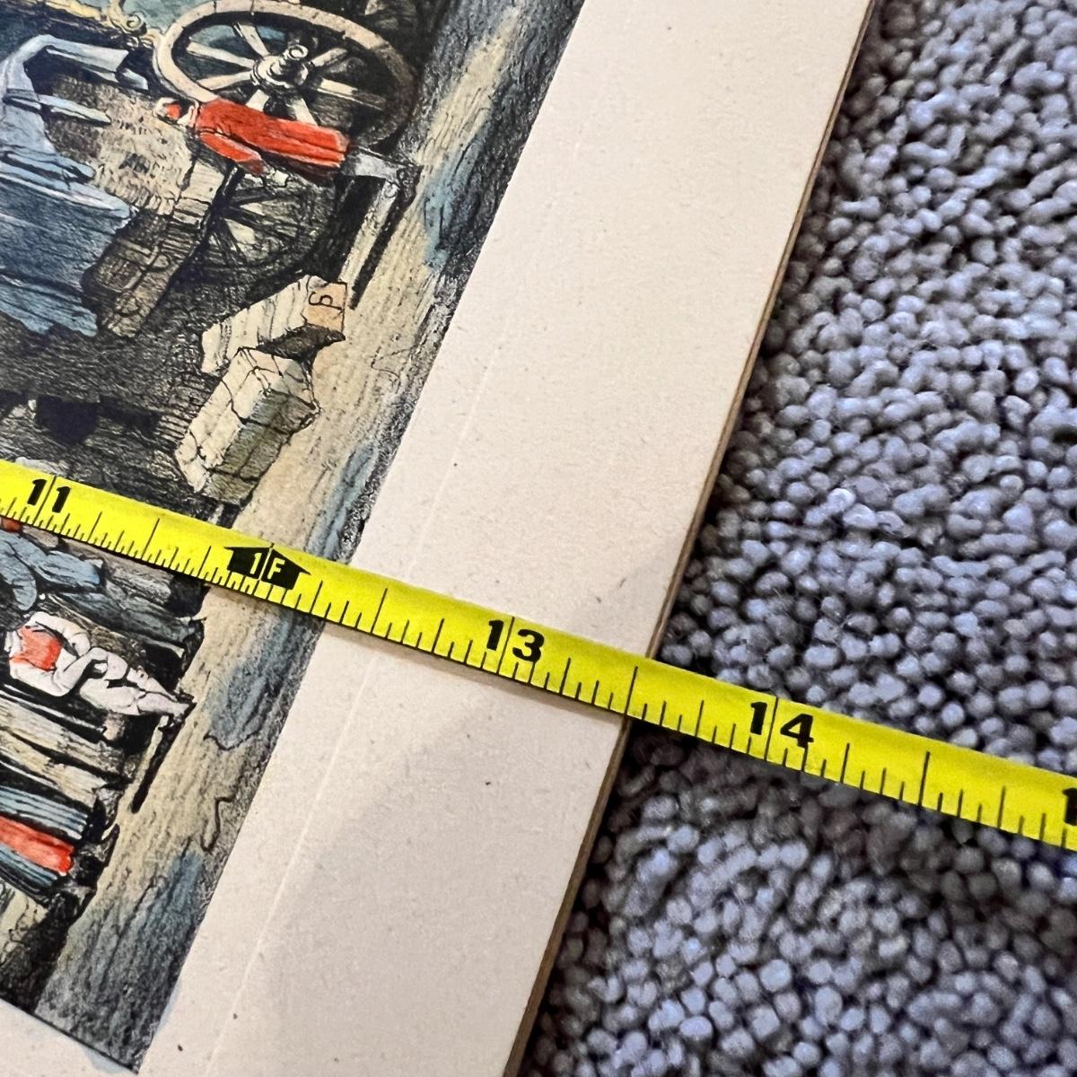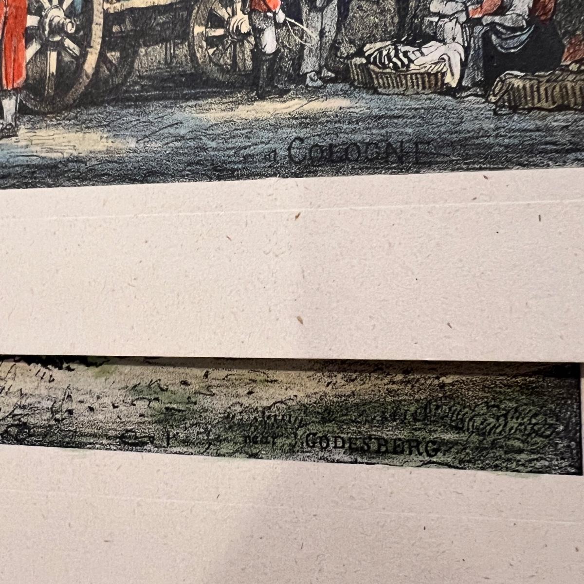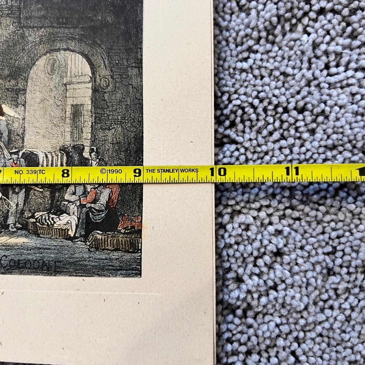 7 prints on 10x13.5" paper. Embossed line border 1/8" from the artwork. Prints have muted colors with pops of bright reds, yellows, and blues. The close up second picture represents the colors the best. These prints are ready to be framed and will make a great collection!
