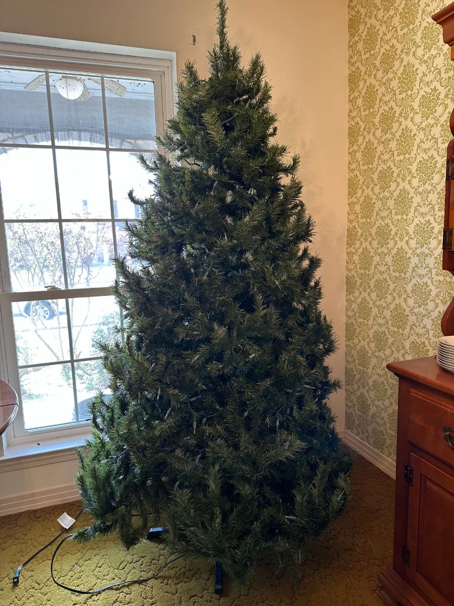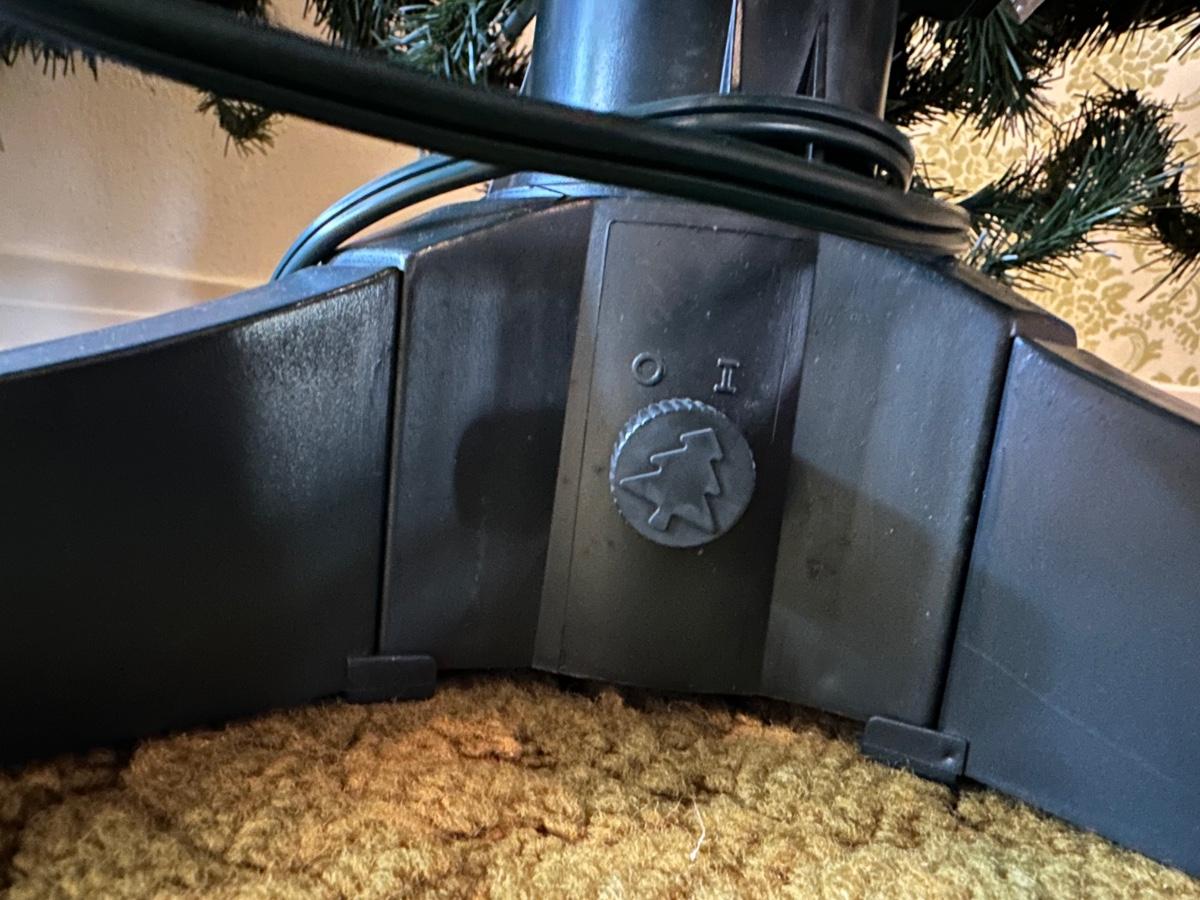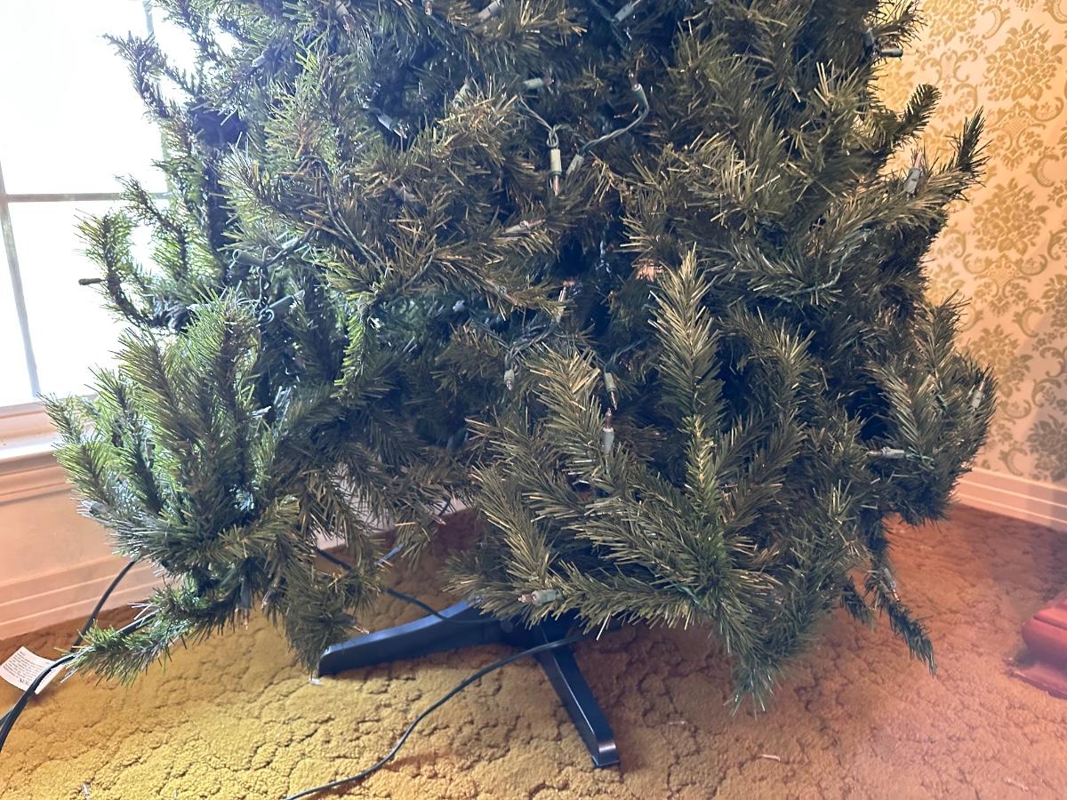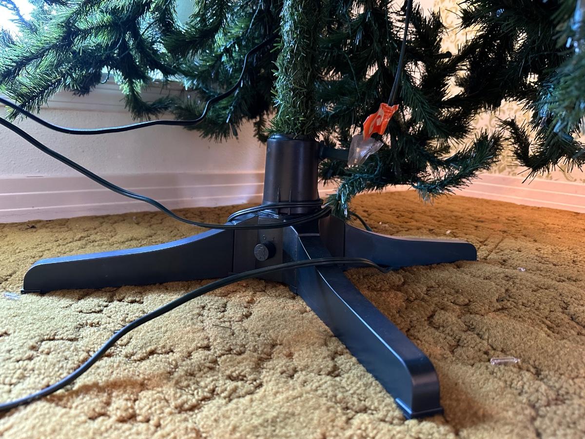 The 7’ foot tree sits on a 360 degree rotating Christmas tree stand.