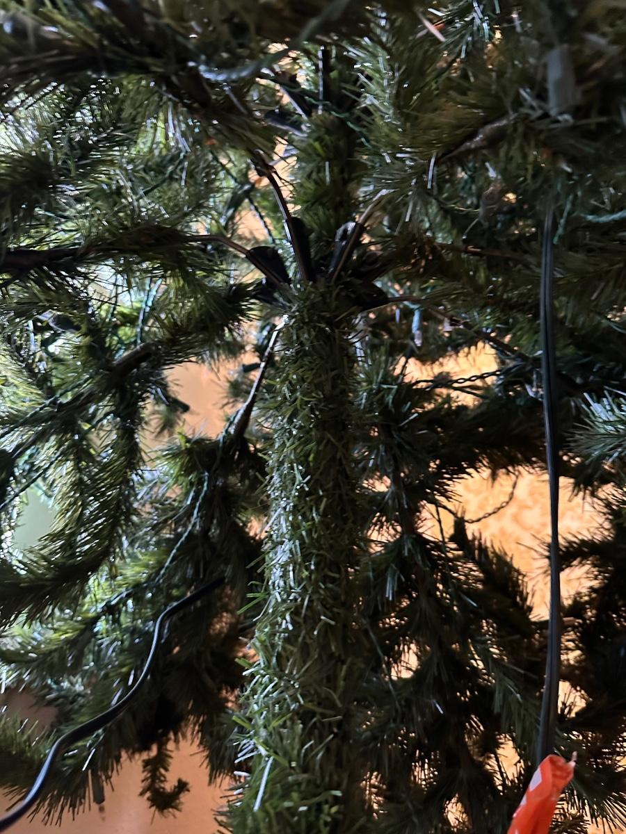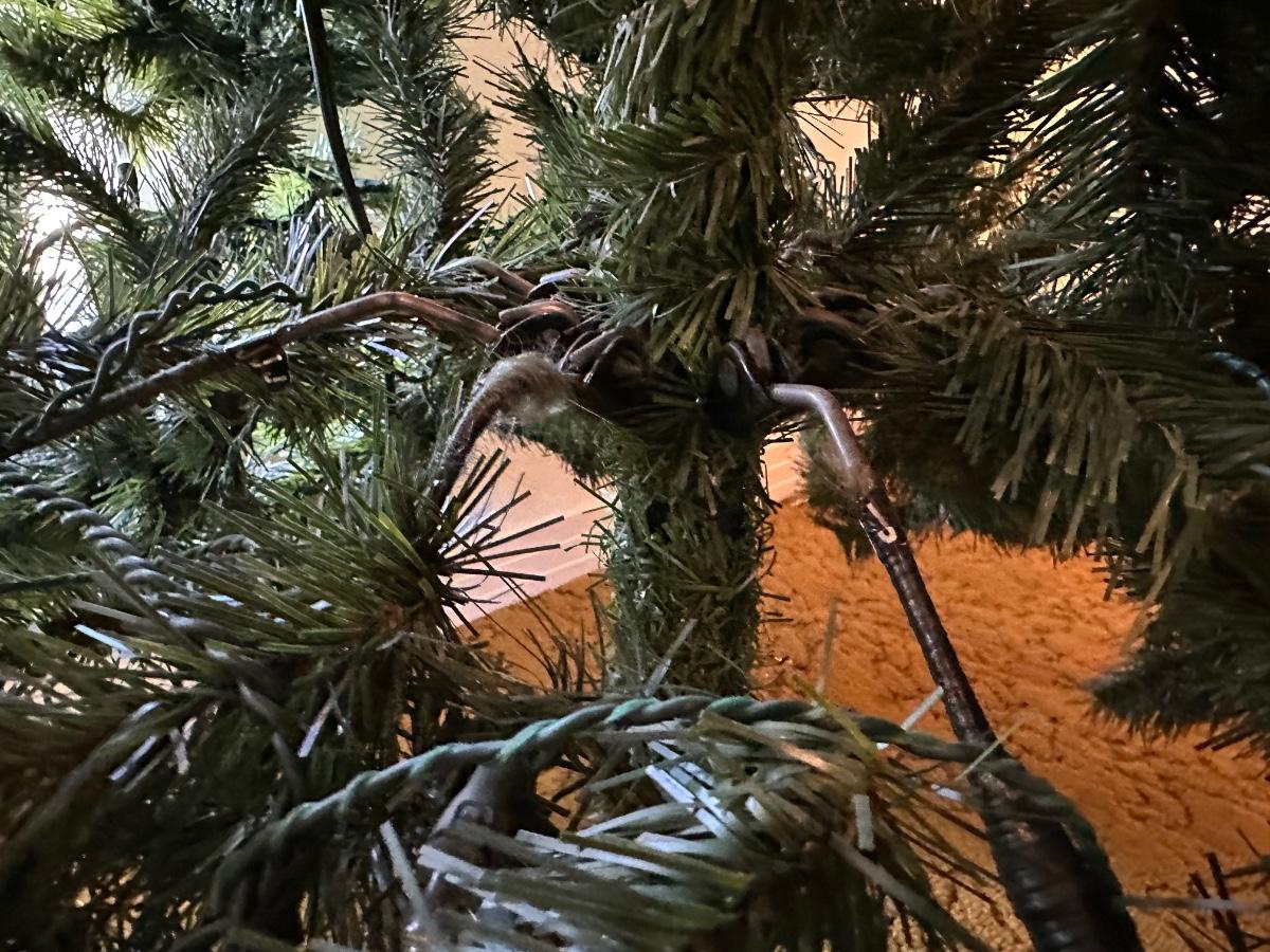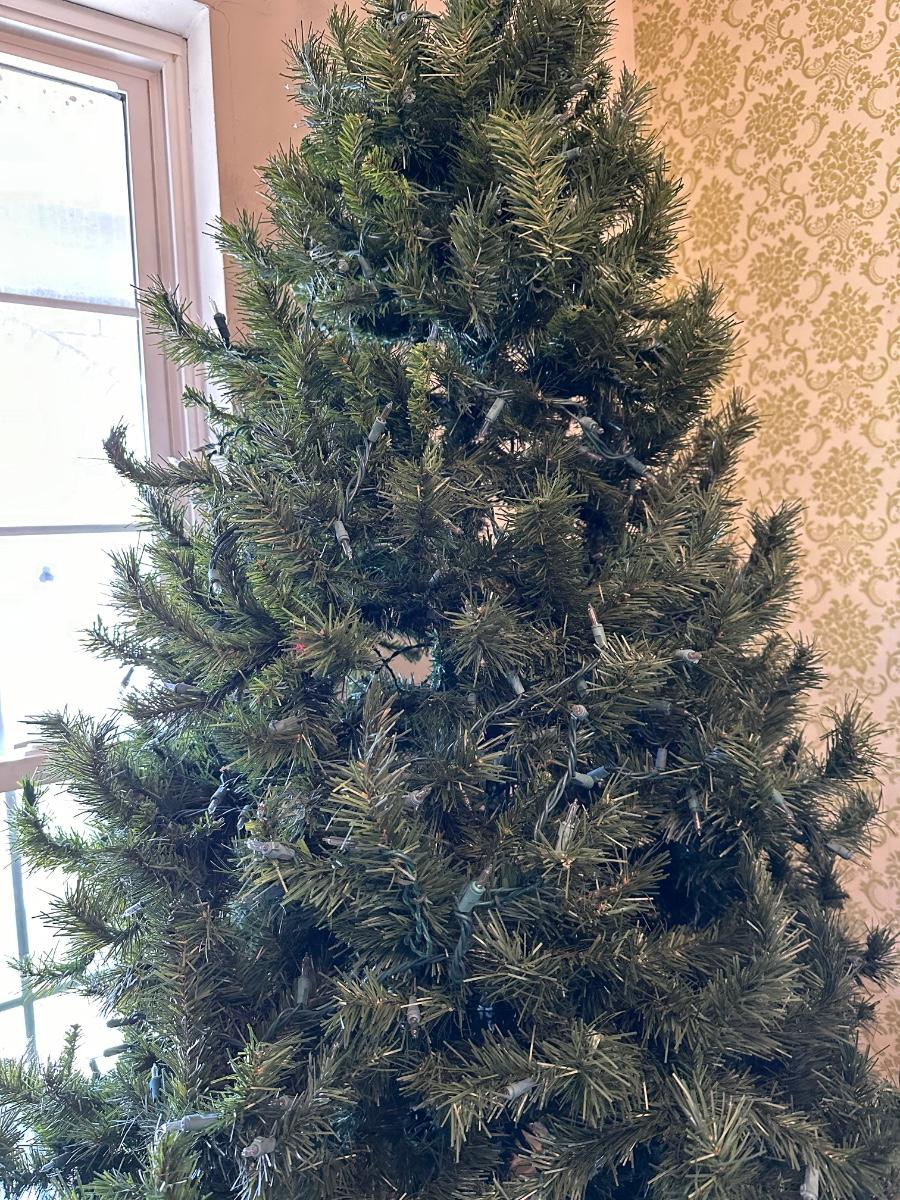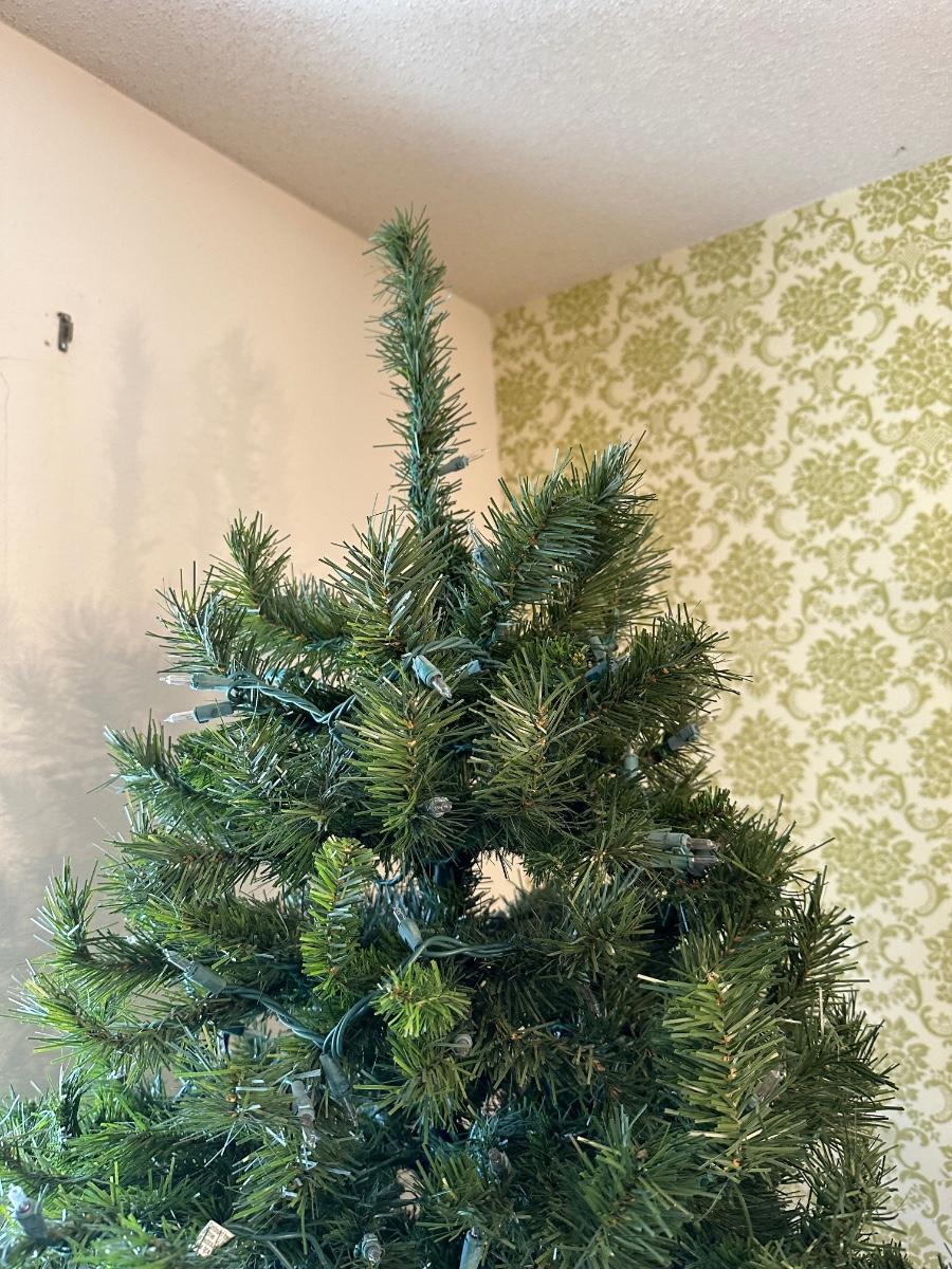 The 7’ foot tree sits on a 360 degree rotating Christmas tree stand.
