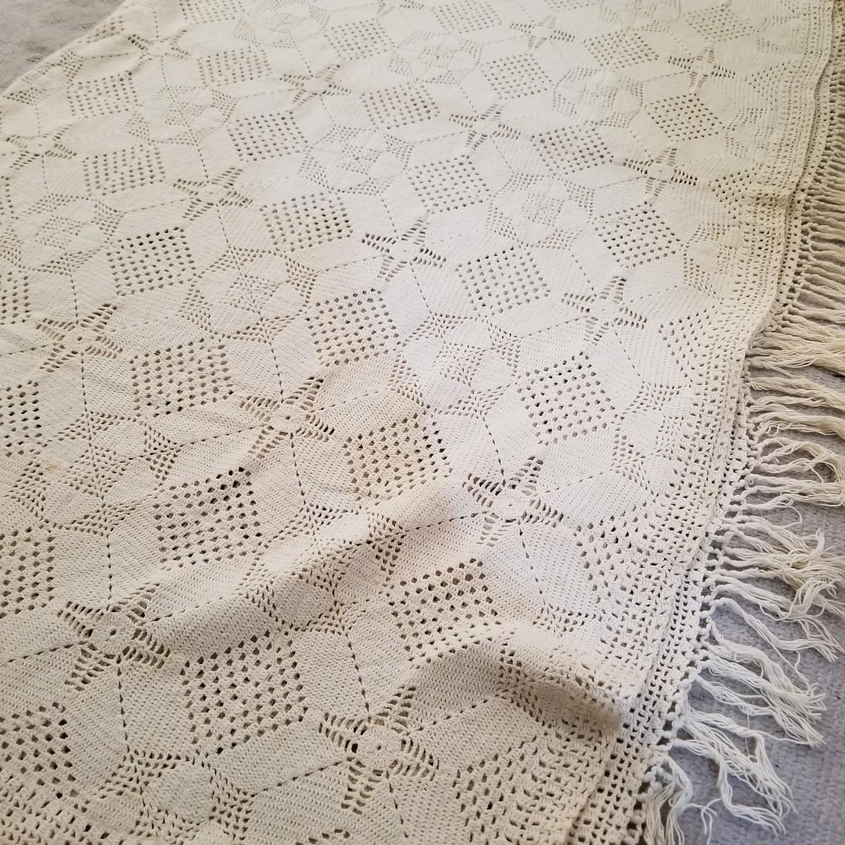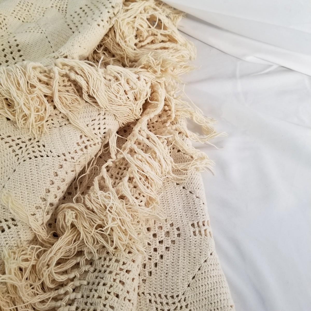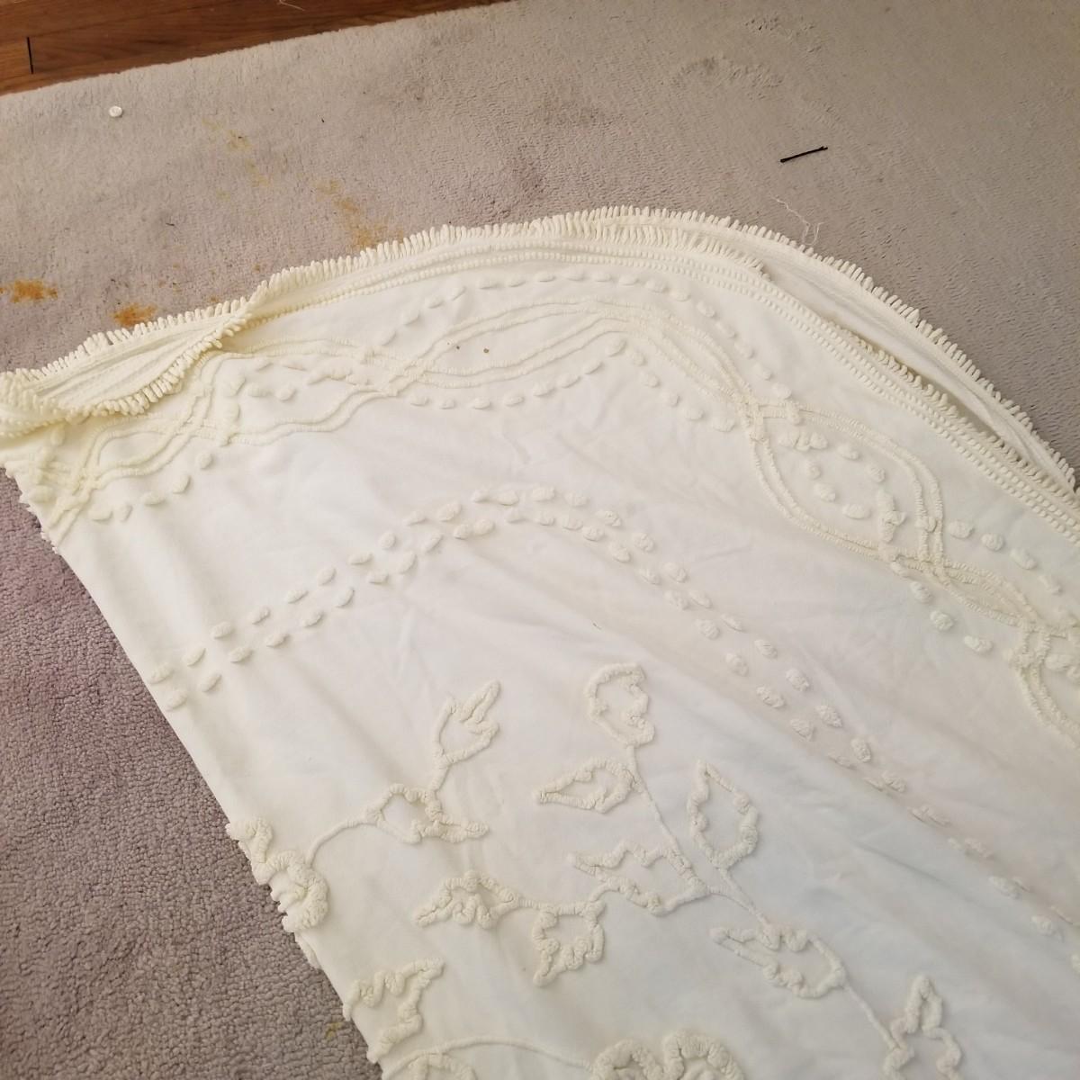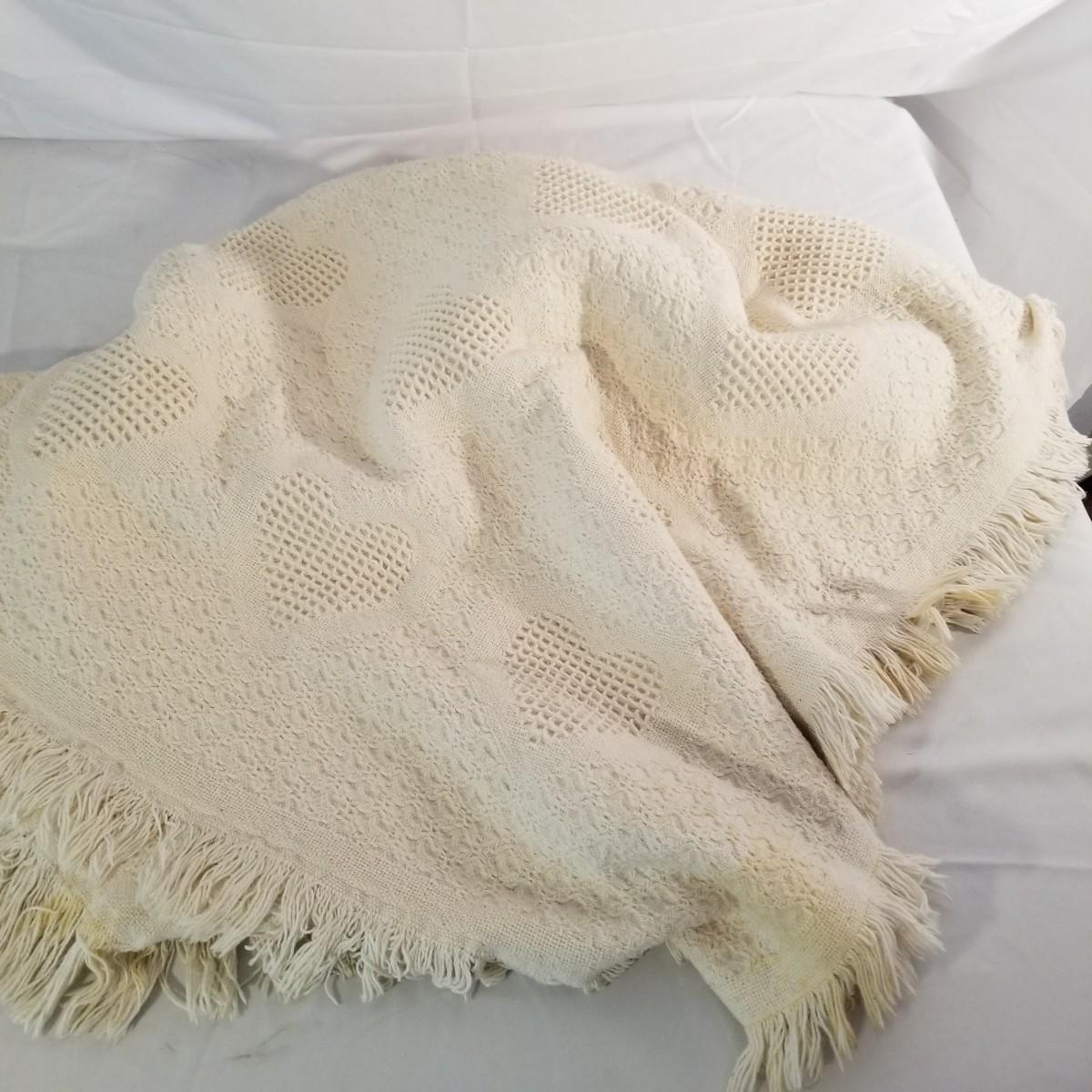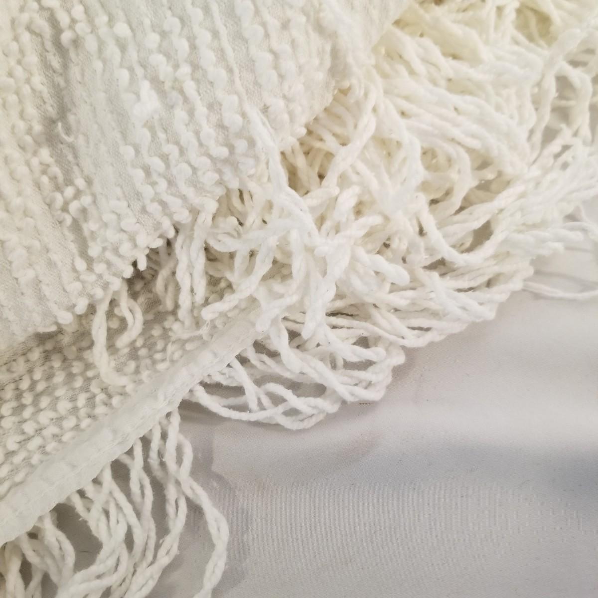 A mixture of bed toppers, white and ivory colors. Patterns, weaves, cotton, chenille. Most items in fair to good condition. Sizes range from 60"x96" to 84"x102". See photos for detail. Local pickup only.