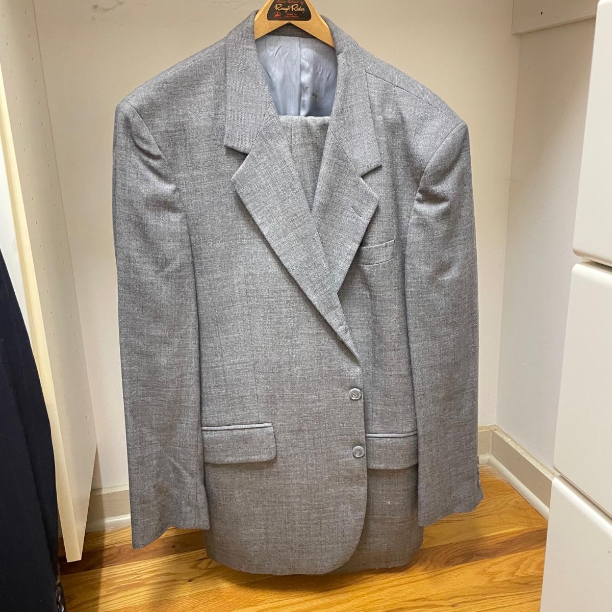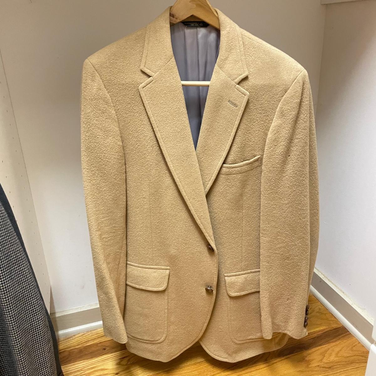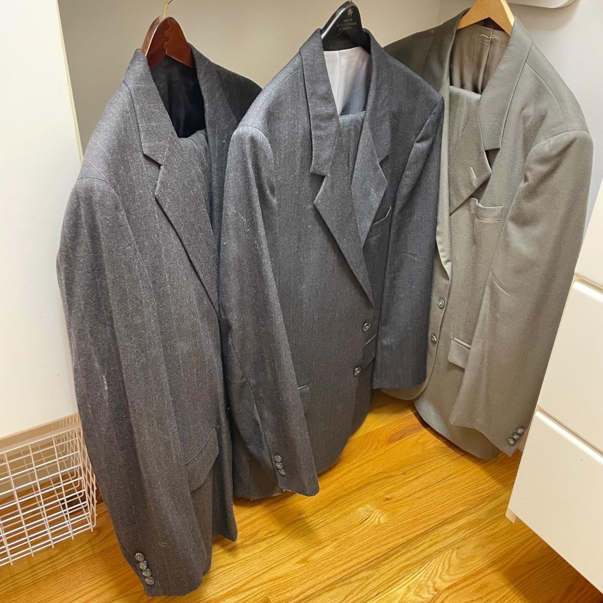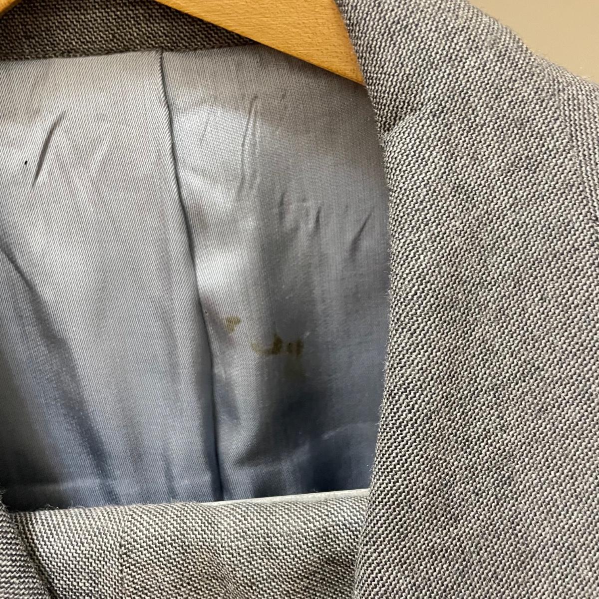 Six jacket/pants suits plus seven blazers all tailor made. A few tweed blazers, a camel hair blazer and six suits. The Atwood Tailoured for Raleighs Washington blazer measures 19” shoulder width and 32” from next to bottom, sleeves are about 24.25”. Blazer brands include Land’s End Charter, Jos A Banks, Profilo, Raleighs, Ralph Lauren. Some pants have a 44-L label. Pants found in another lot in this sale are sized 30x40. Most suits appear to be wool and all could use a nice clean- dust is found on some shoulders and a couple spots are noted in photos. See images. Shipping available. Shipping can be costly. We suggest contacting our preferred local shipping provider, Postage Express, with lot description and getting an estimate before bidding: (828) 670-5501 or postageexpress@yahoo.com.