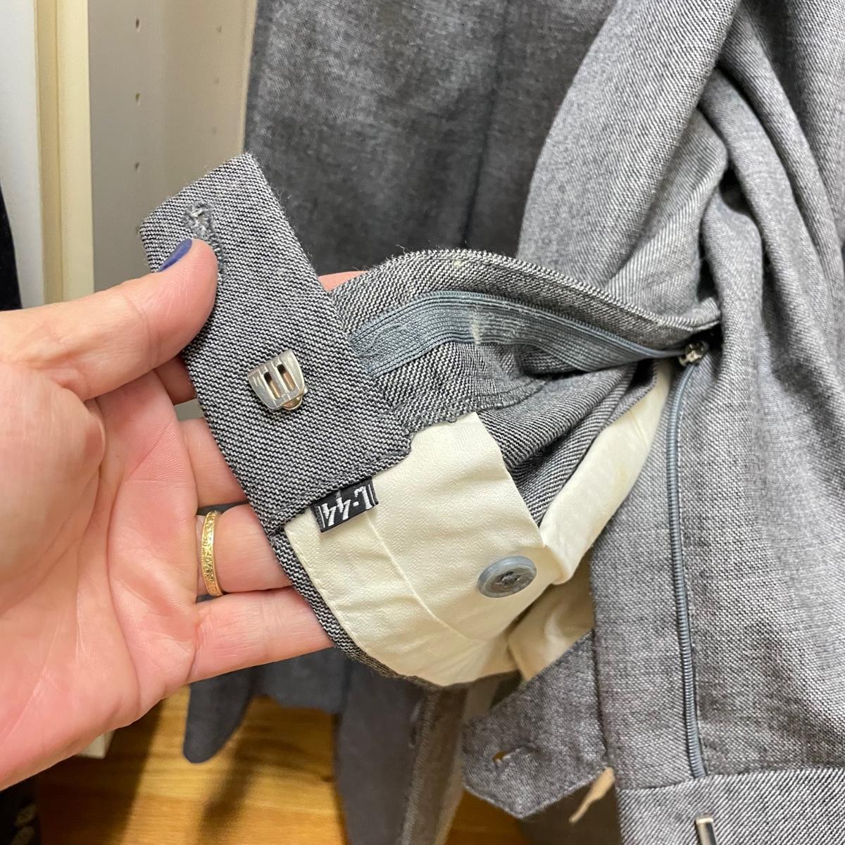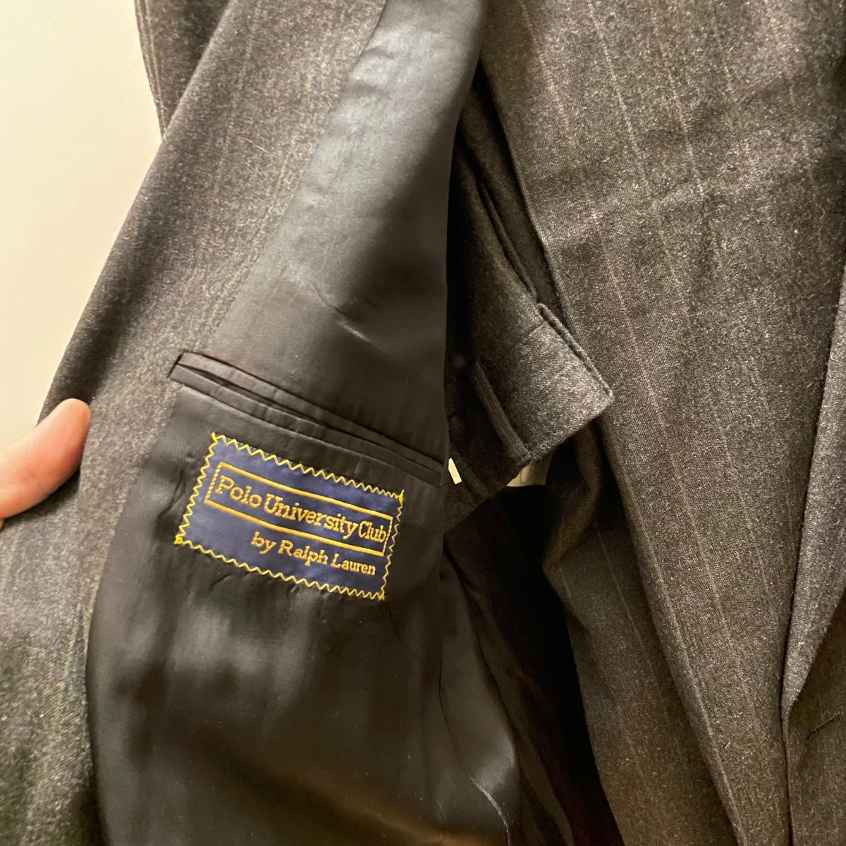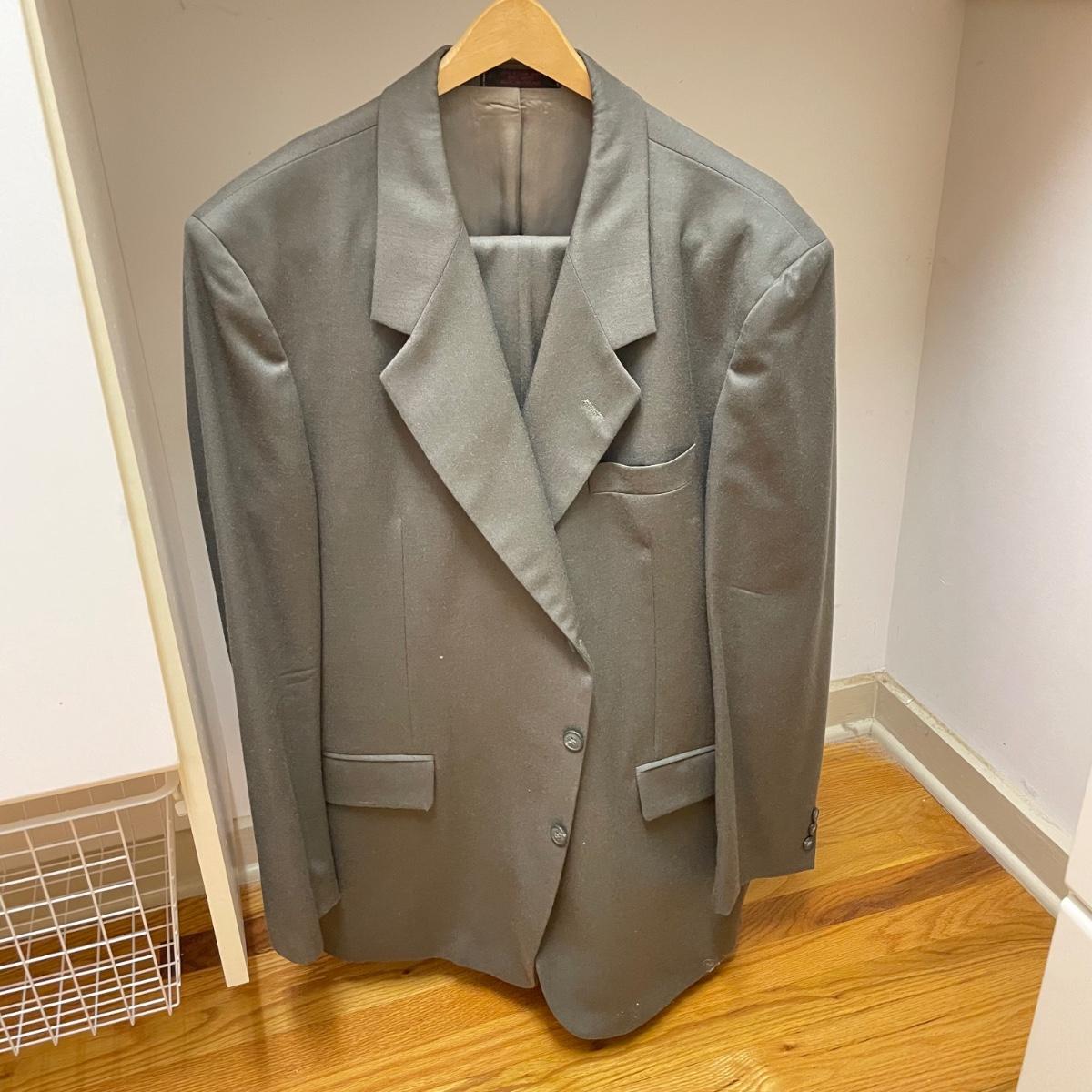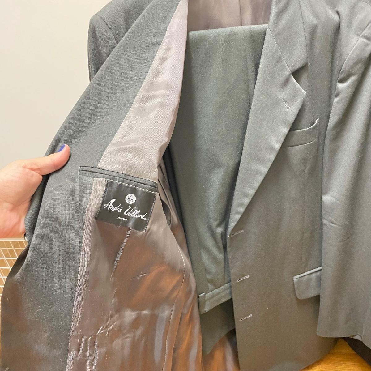 Six jacket/pants suits plus seven blazers all tailor made. A few tweed blazers, a camel hair blazer and six suits. The Atwood Tailoured for Raleighs Washington blazer measures 19” shoulder width and 32” from next to bottom, sleeves are about 24.25”. Blazer brands include Land’s End Charter, Jos A Banks, Profilo, Raleighs, Ralph Lauren. Some pants have a 44-L label. Pants found in another lot in this sale are sized 30x40. Most suits appear to be wool and all could use a nice clean- dust is found on some shoulders and a couple spots are noted in photos. See images. Shipping available. Shipping can be costly. We suggest contacting our preferred local shipping provider, Postage Express, with lot description and getting an estimate before bidding: (828) 670-5501 or postageexpress@yahoo.com.