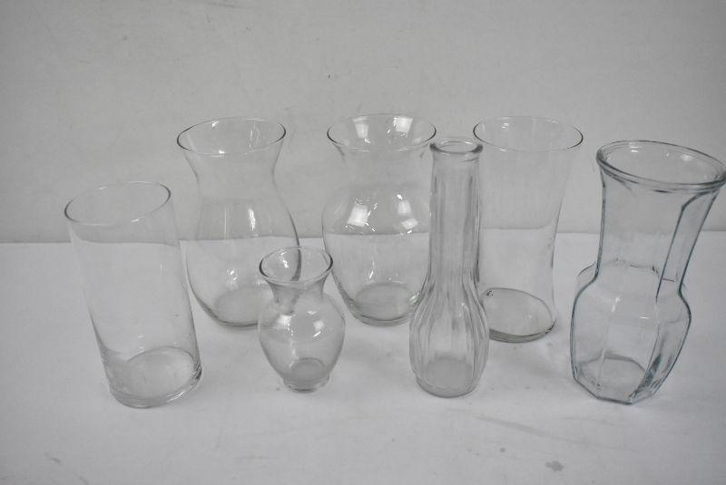 7 Clear Glass Vases