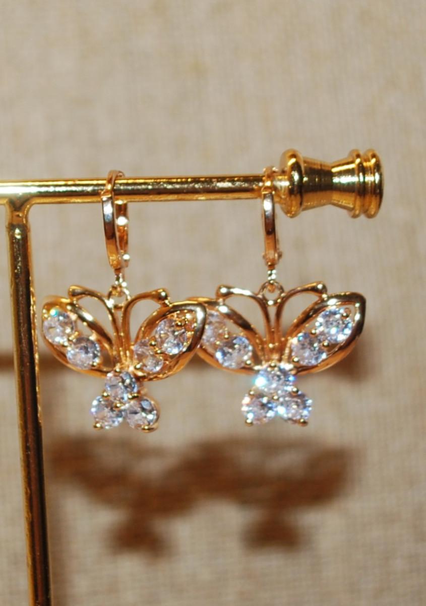 7 Clear Stones Butterfly Earrings Set (¾" x ¾") with Huggie Clasp