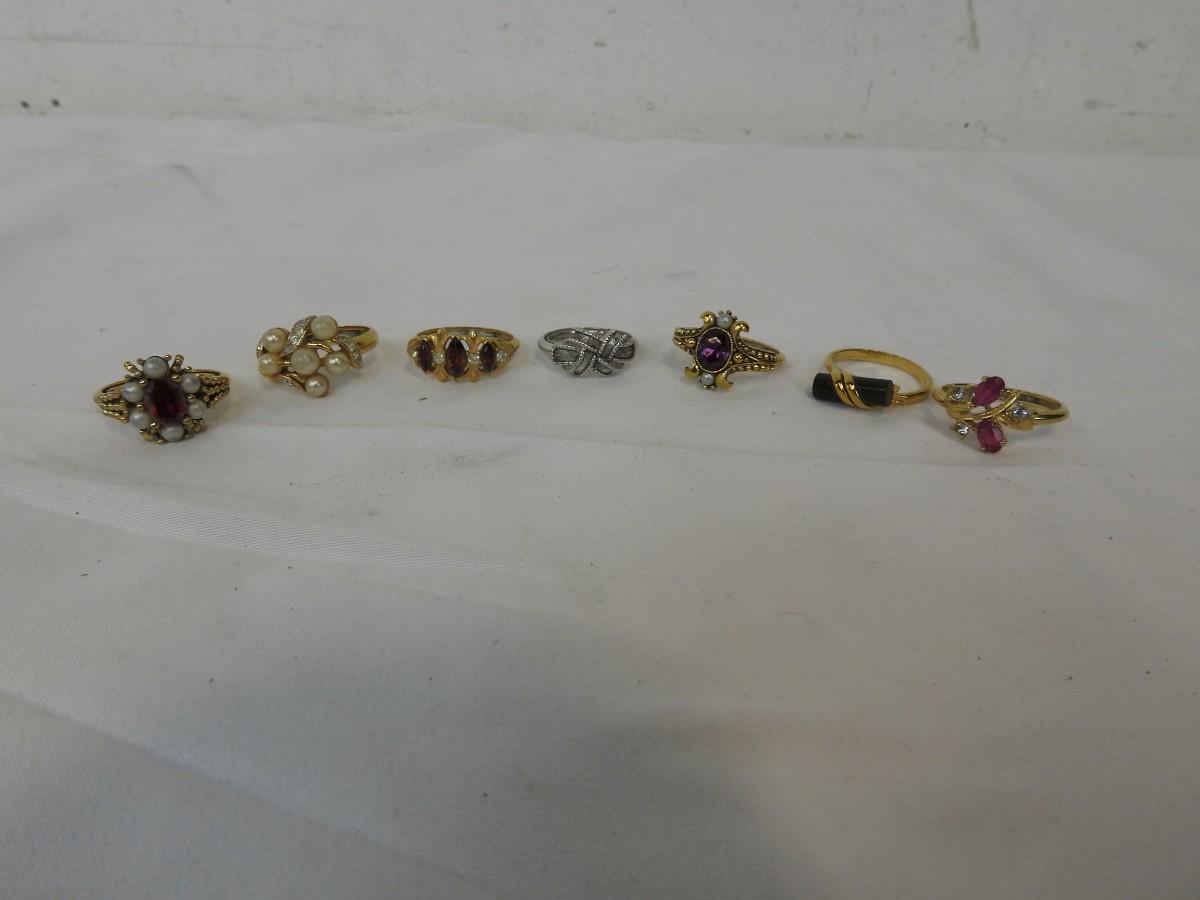 7 Costume Jewelry Rings by Avon: sizes 8, 8.5, 9, 6, 9.5, 8, & 10