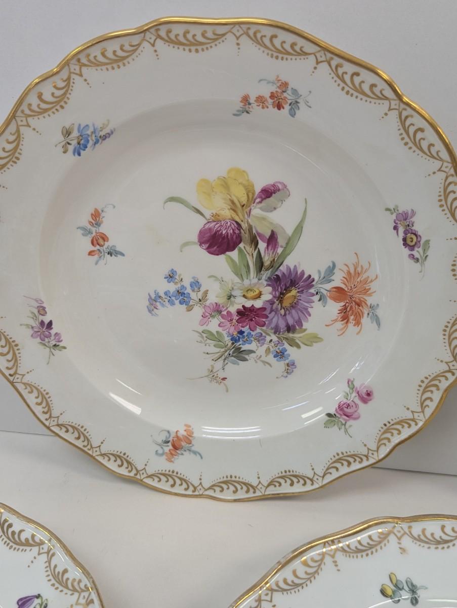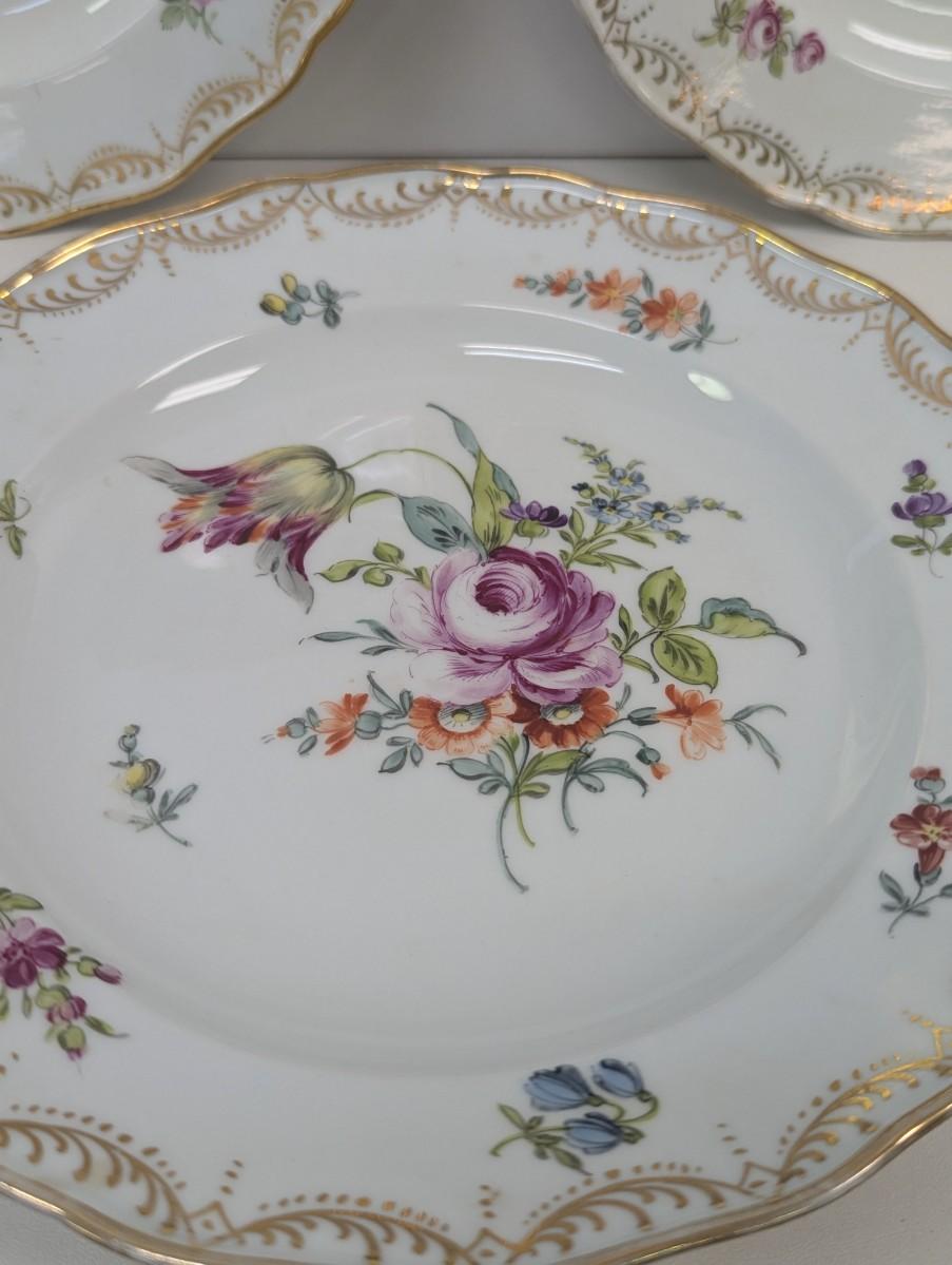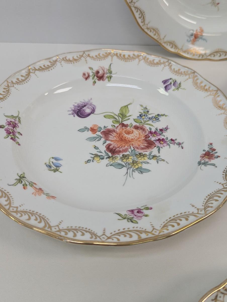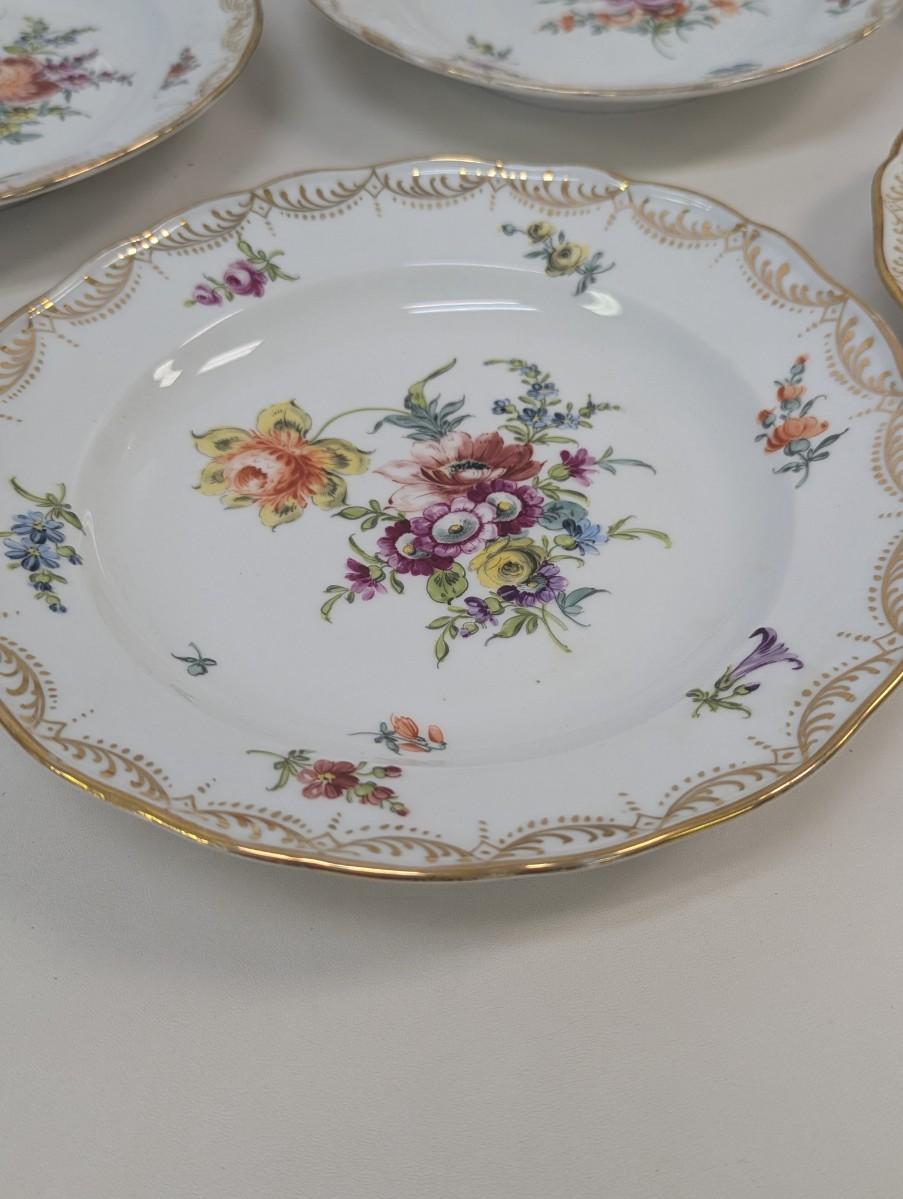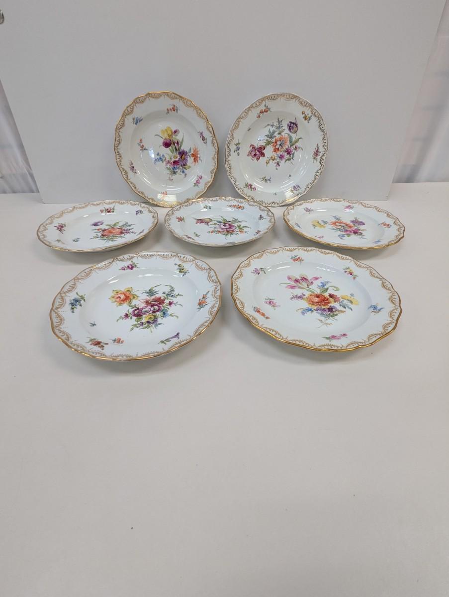 7 - Dresden Porcelain Antique Swirled Floral & Gold Plates