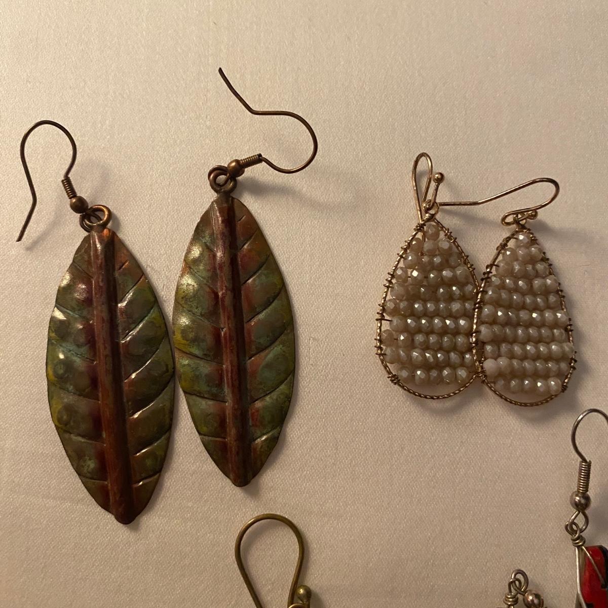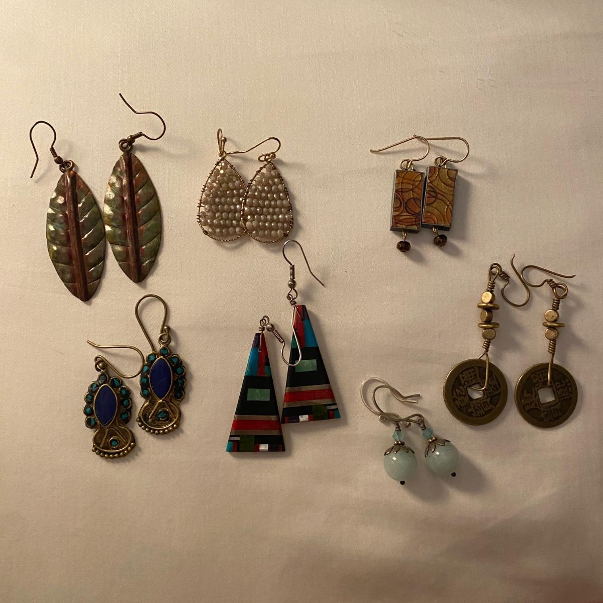 Seven pairs of fashion earrings. Some are metal. Some have beads. None are marked. See photos. Shipping available.