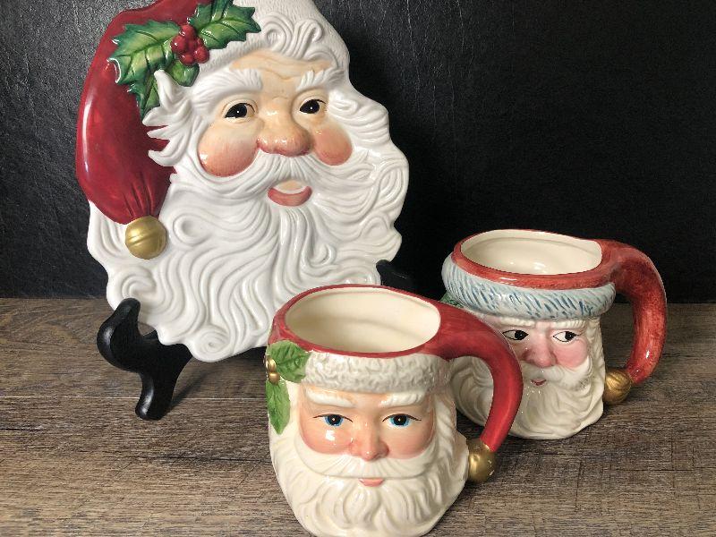 Omnibus by Fitz & Floyd Santa mugs and tray