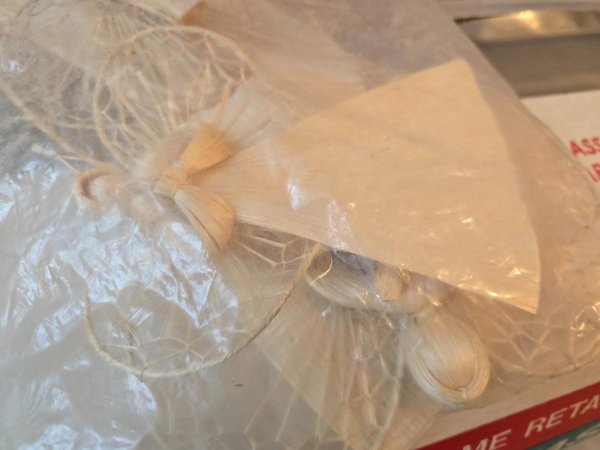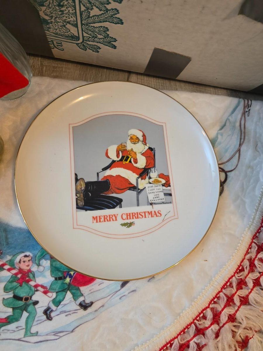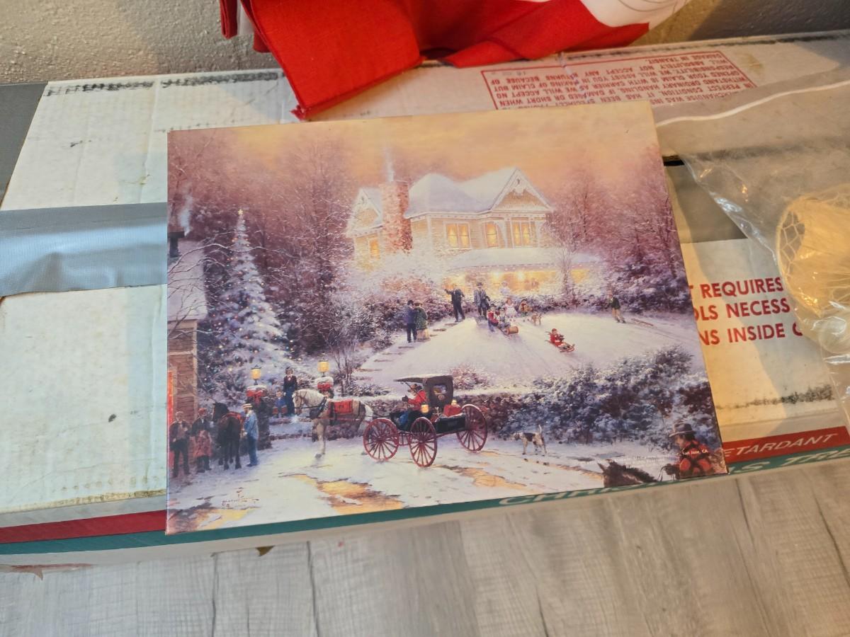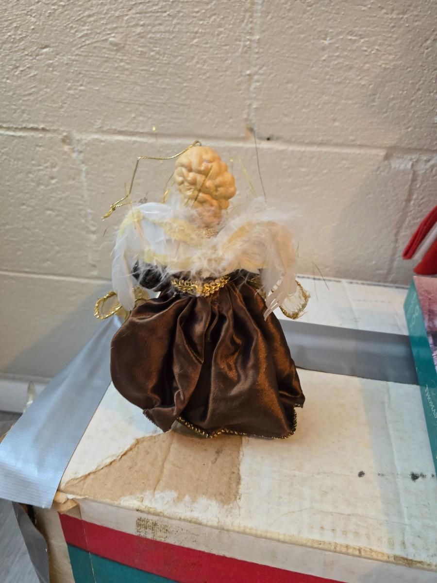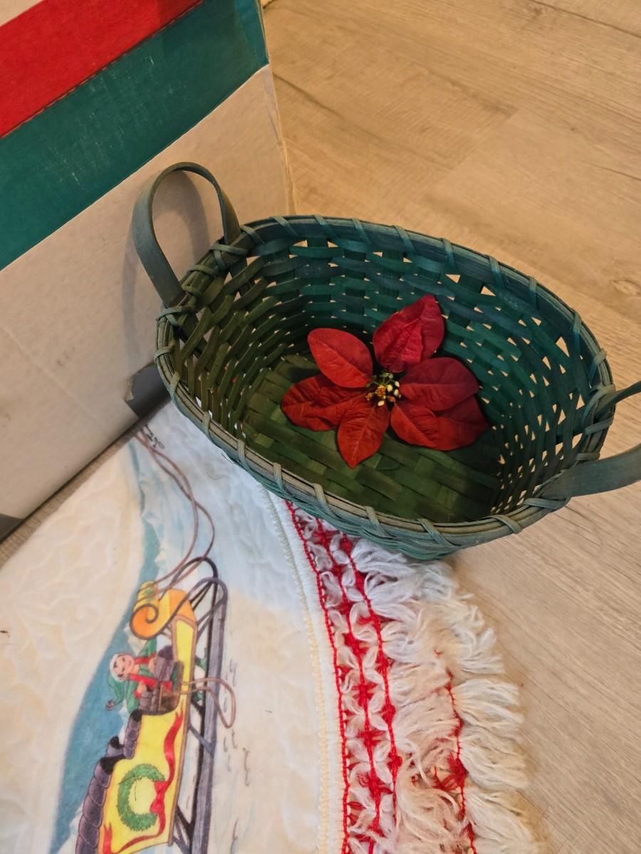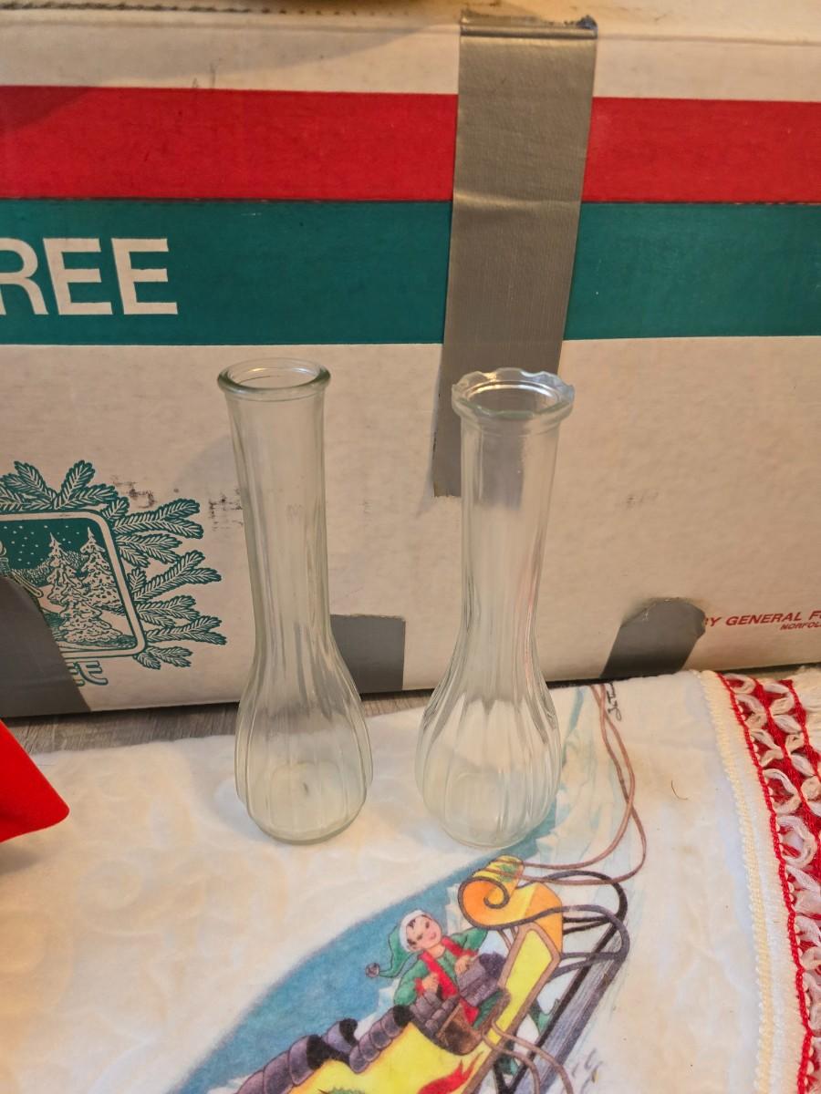 7 foot Douglas fir tree with Wreath, tree stand, vintage tablecloth, tree skirt, Jingle bells, Angel tree topper and more
