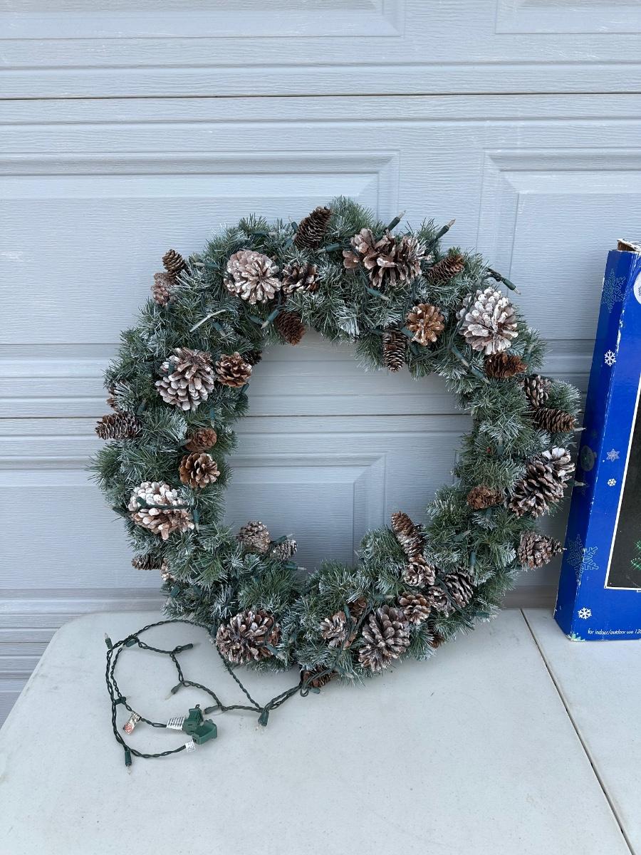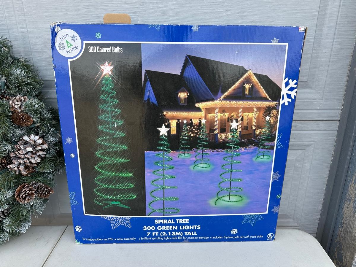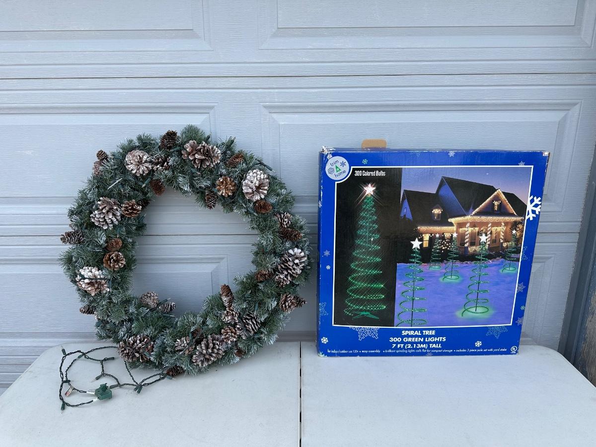7 FT OUTDOOR SPIRAL LIT TREE AND A PRE-LIT WREATH