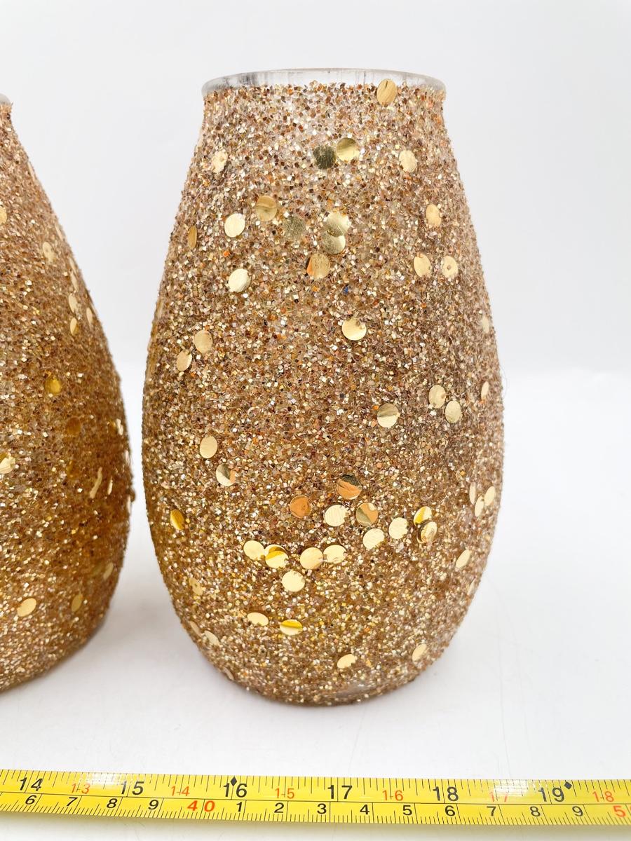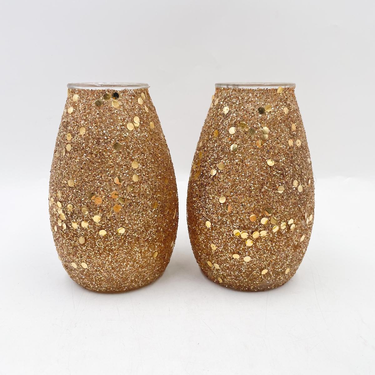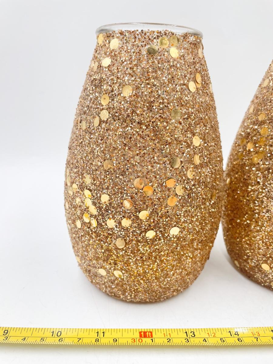 7” GOLD GLITTER GLASS CANDLE HOLDERS