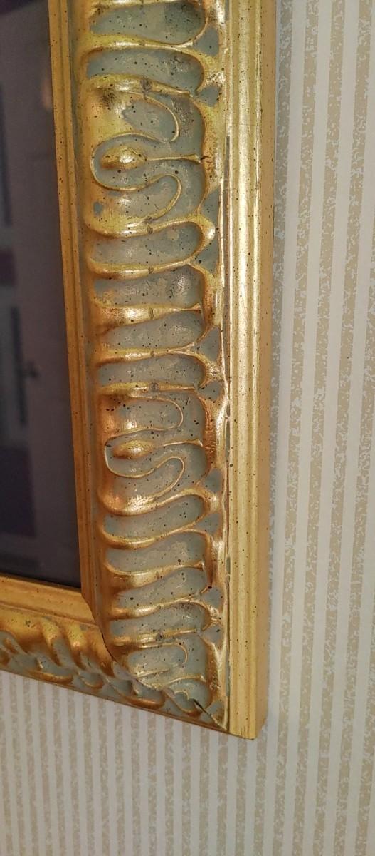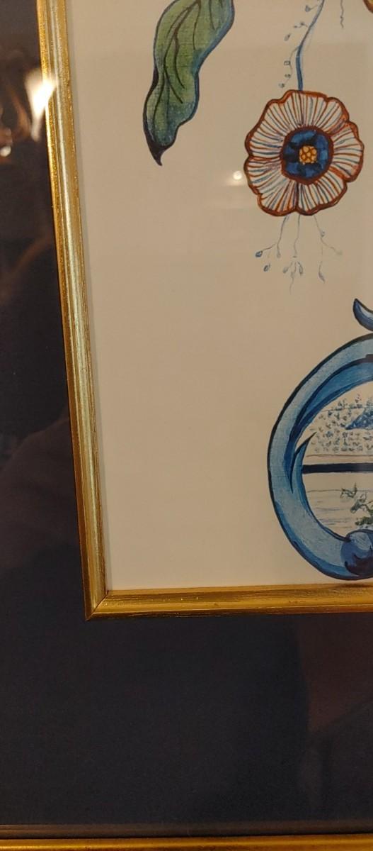 Beautiful ornate frames both have dark navy blue backgrounds.